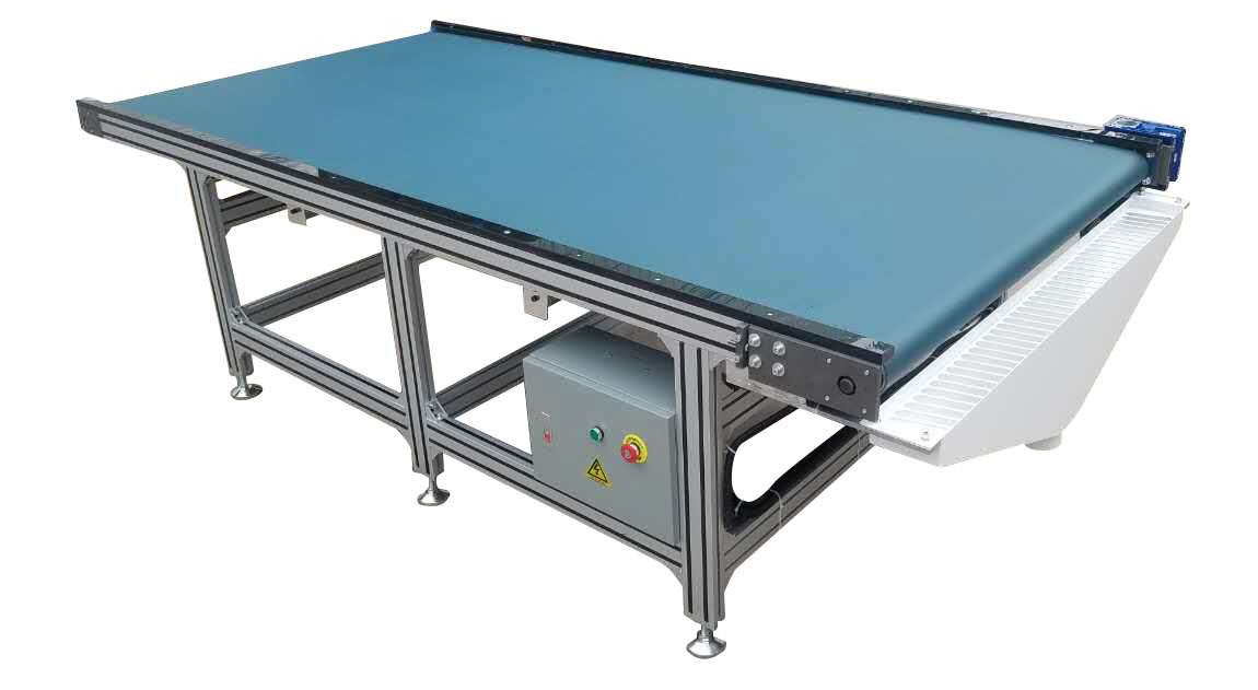 Разгрузочный стол оснащен оптическими датчиками для автоматического старта/остановки ленты с целью дальнейшей разгрузки в приемной зоне. Когда деталь, двигаясь по конвейерной ленте, пересекает световой луч, приемник получает сигнал, останавливающий конвейер, производится разгрузка, после чего конвейер возобновляет движение до следующей партии деталей.