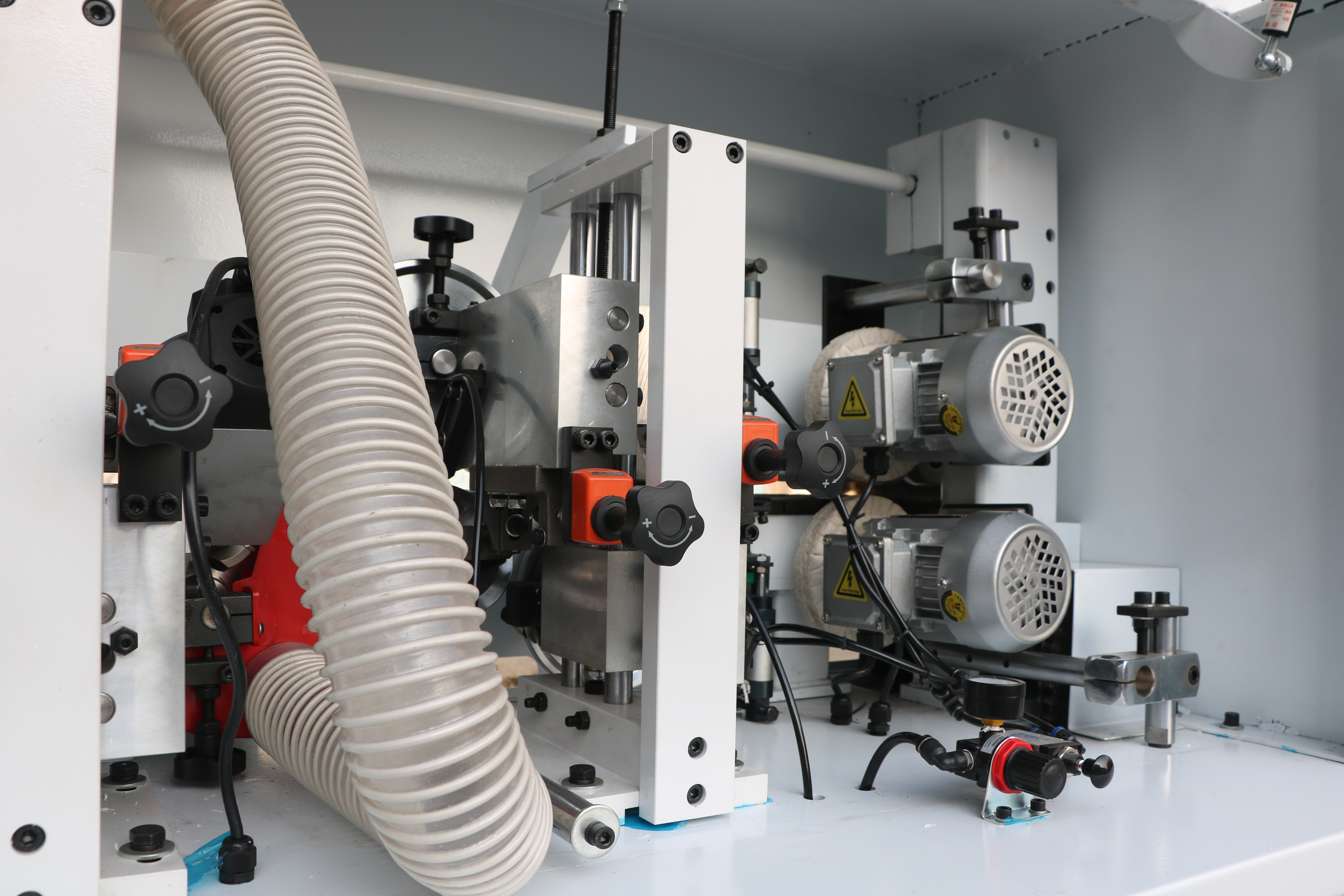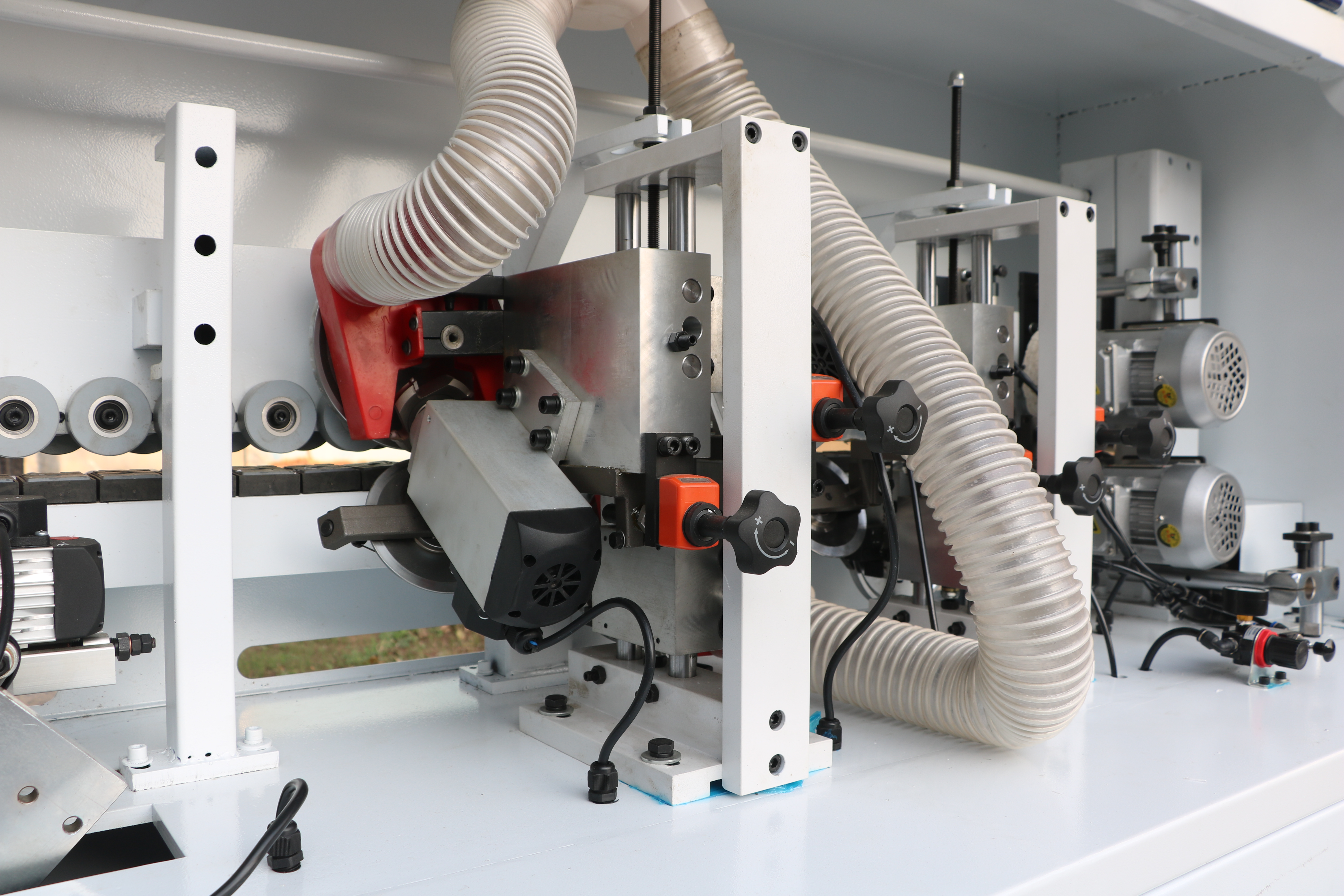 Для предварительной прифуговки заготовки перед приклеиванием кромки. Удаляет сколы и паз от подрезной пилы Узел оснащен 2 высокооборотистыми моторами по 2 KW каждый.