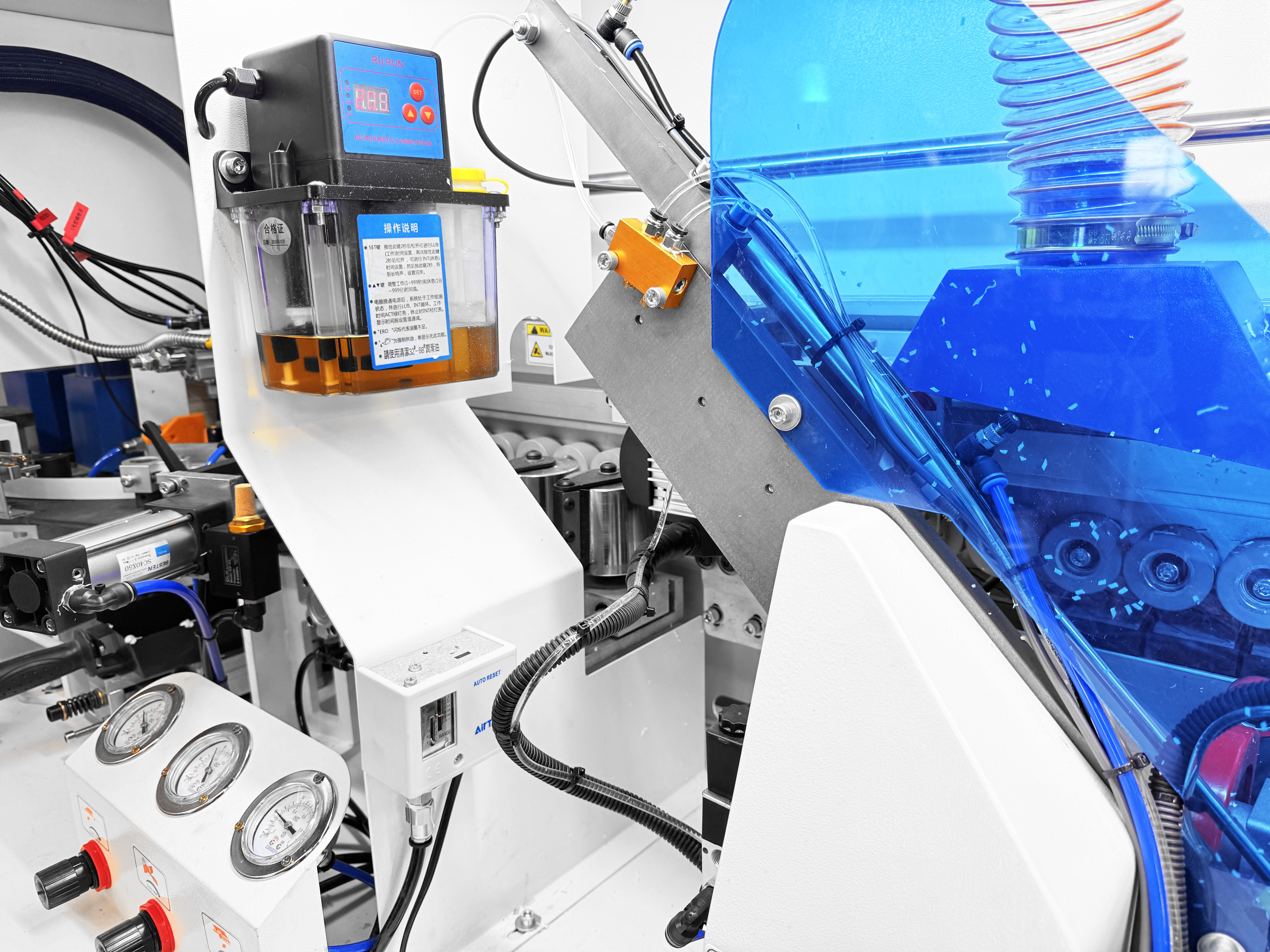 Регулировка давления и точный контроль подачи воздуха. Состоит из резервуара с маслом для смазки системы масляным туманом, фильтра тонкой очистки и блока контроля распределения.