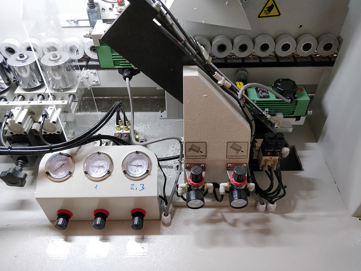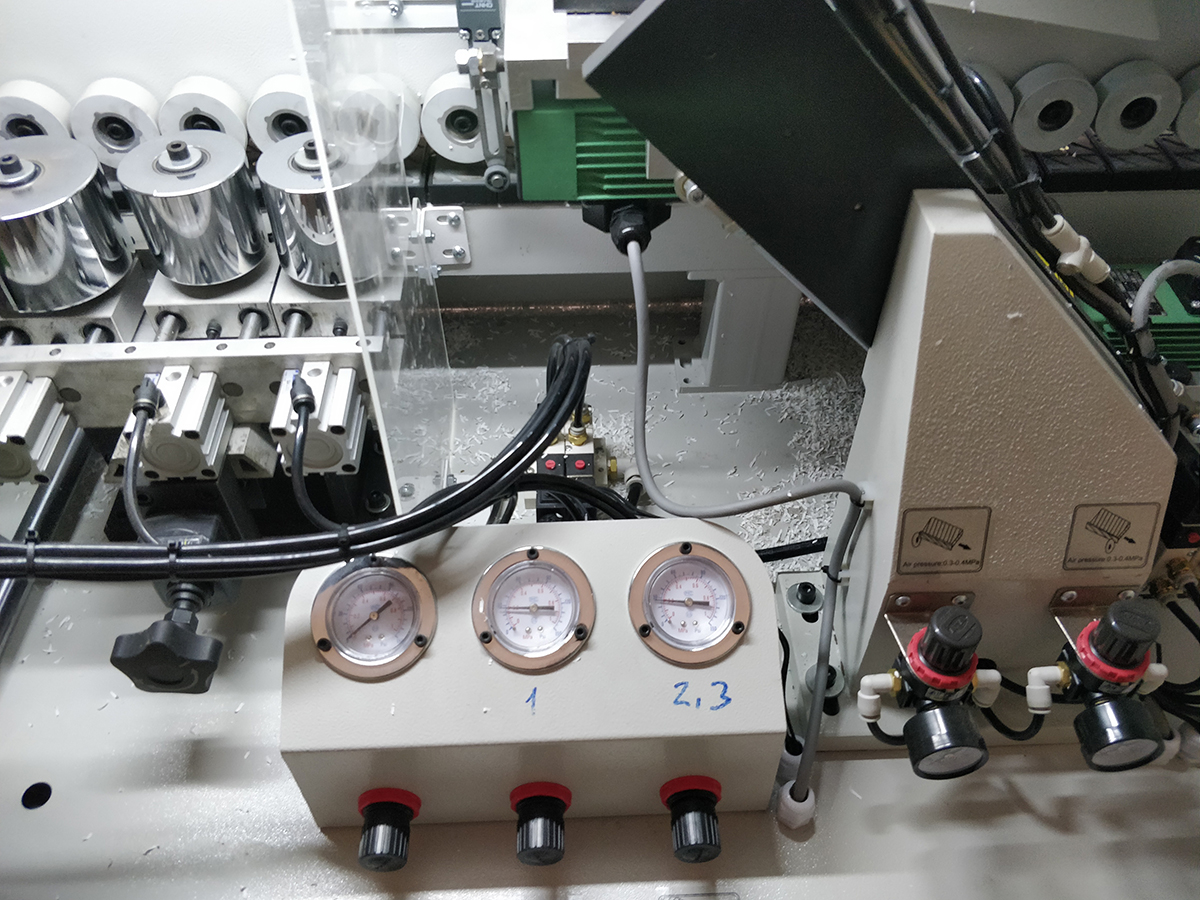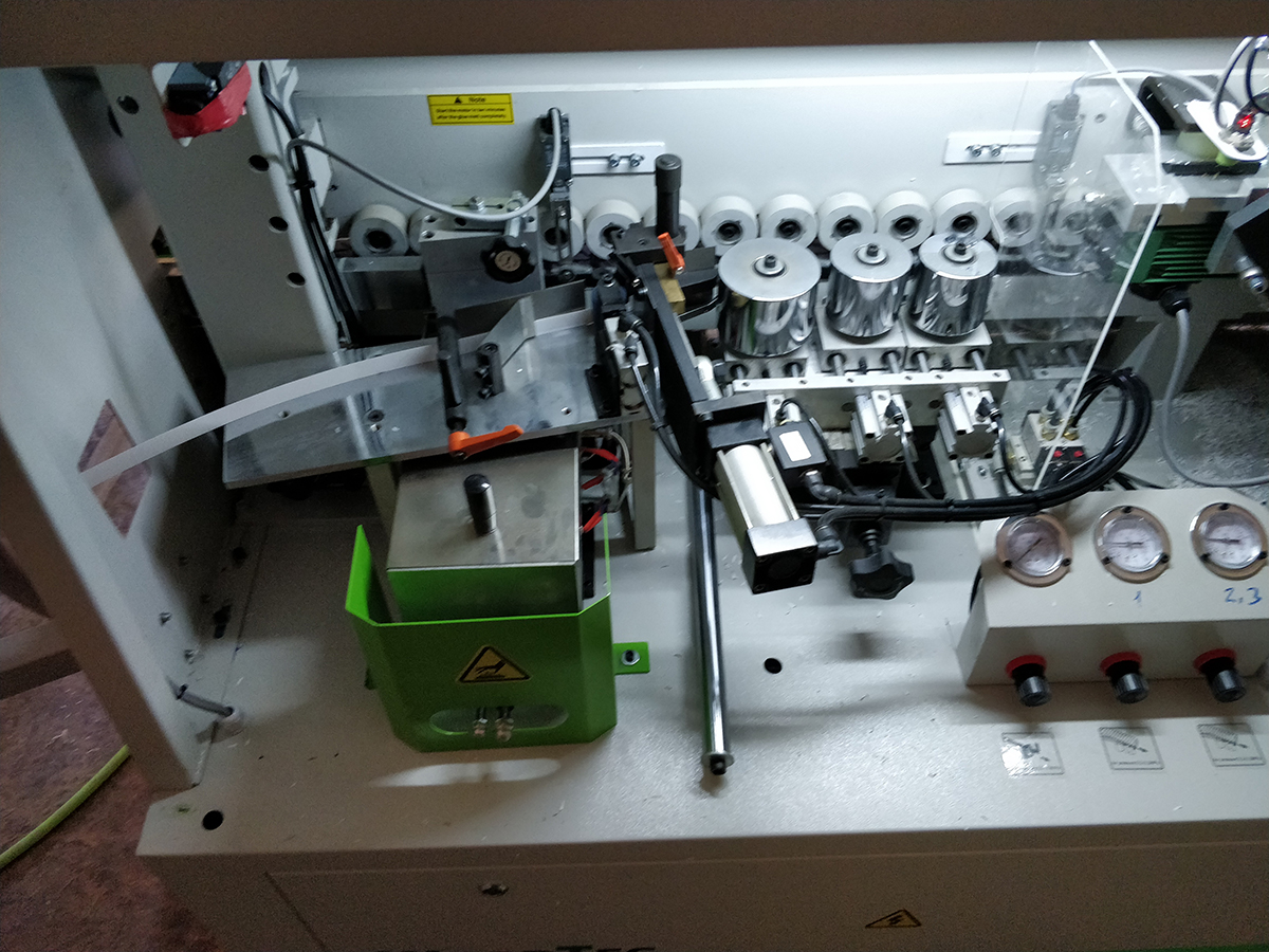 Если регулировка пресс группы осуществляется механически с помощью пружины, то одного усилия на пресс валах добиться не удастся, что приводит к частичному отклеиванию кромки.