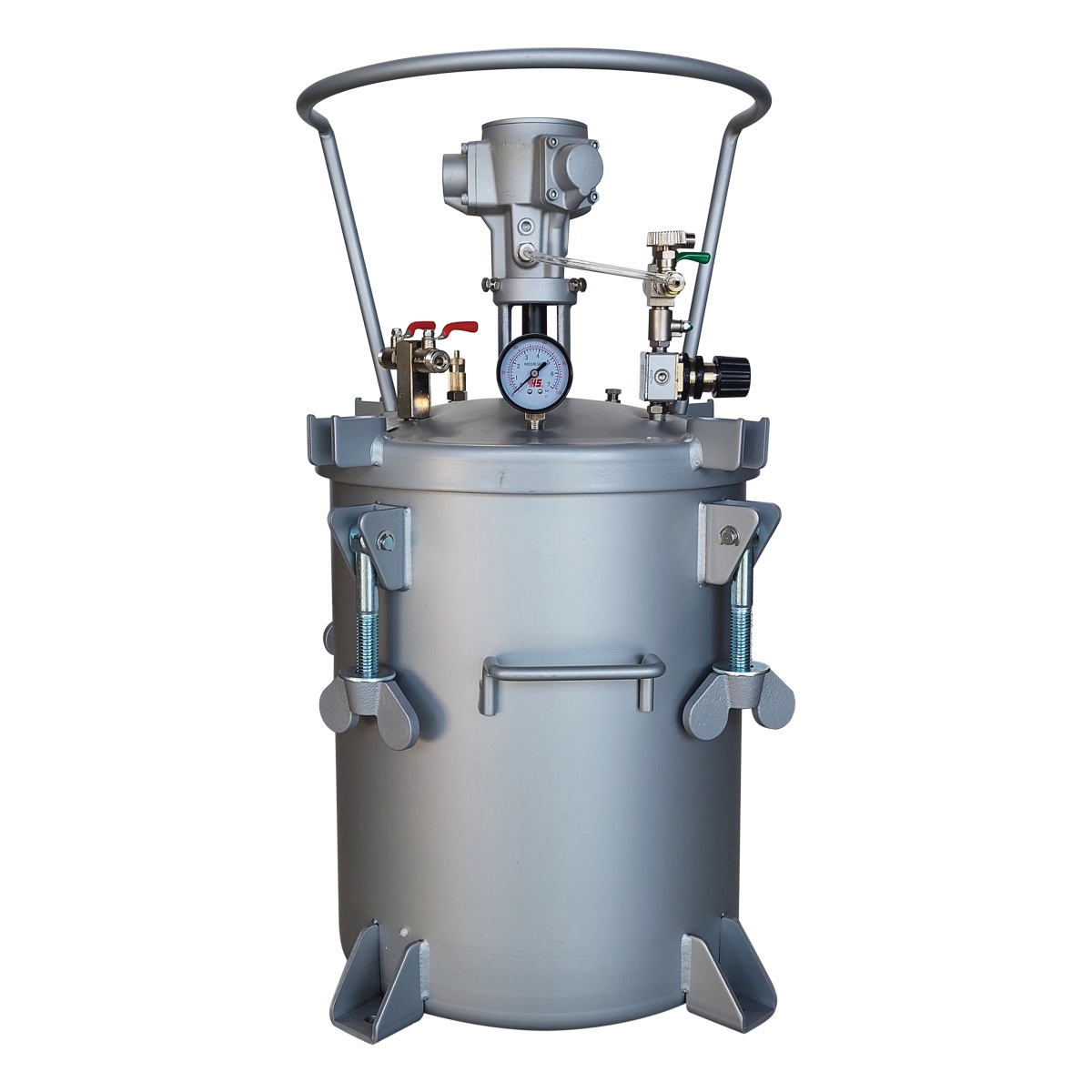 Красконагнетательные баки применяются для приготовления, постоянного перемешивания (если необходимо) и дальнейшей подачей ЛКМ, а так же различных дисперсных Клеев (ПВА, ПУР) в пистолет-распылитель. Они оснащены удобными регуляторами для настройки необходимого давления окрасочного материала и безопасными клапанами сброса давления. Ручные и пневматические мешалки обеспечивают высокое качество смесей. Баки изготовлены из высококачественных материалов и соответствуют всем мировым и европейским требованиям, предъявляемым к оборудованию, работающему под высоким давлением (PED, ATEX и ASME).