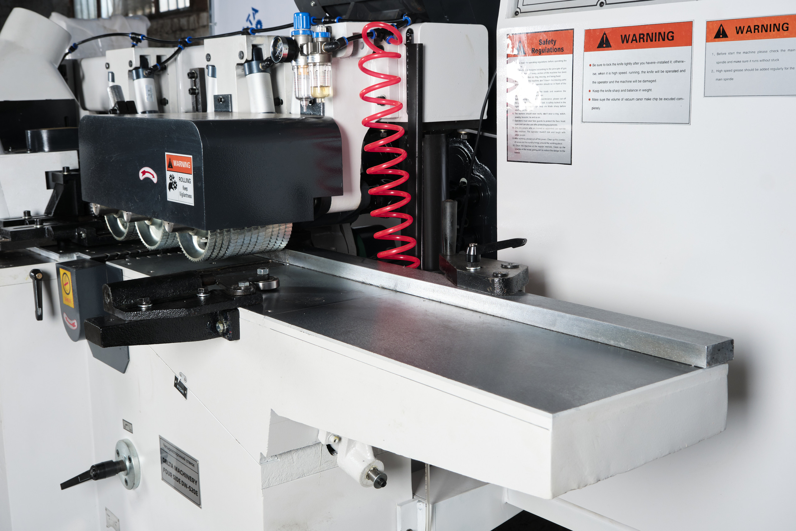 Четырёхсторонний станок DELTAMACHINERY FOUR SIDE DW-516E (5 шпинделей) предназначен для высокоточной четырехсторонней обработки деревянной заготовки с целью получения высококачественных изделий за один проход. После обработки на 4-х сторонних станках отпадает необходимость в последующем шлифовании профилированных и строганных поверхностей.