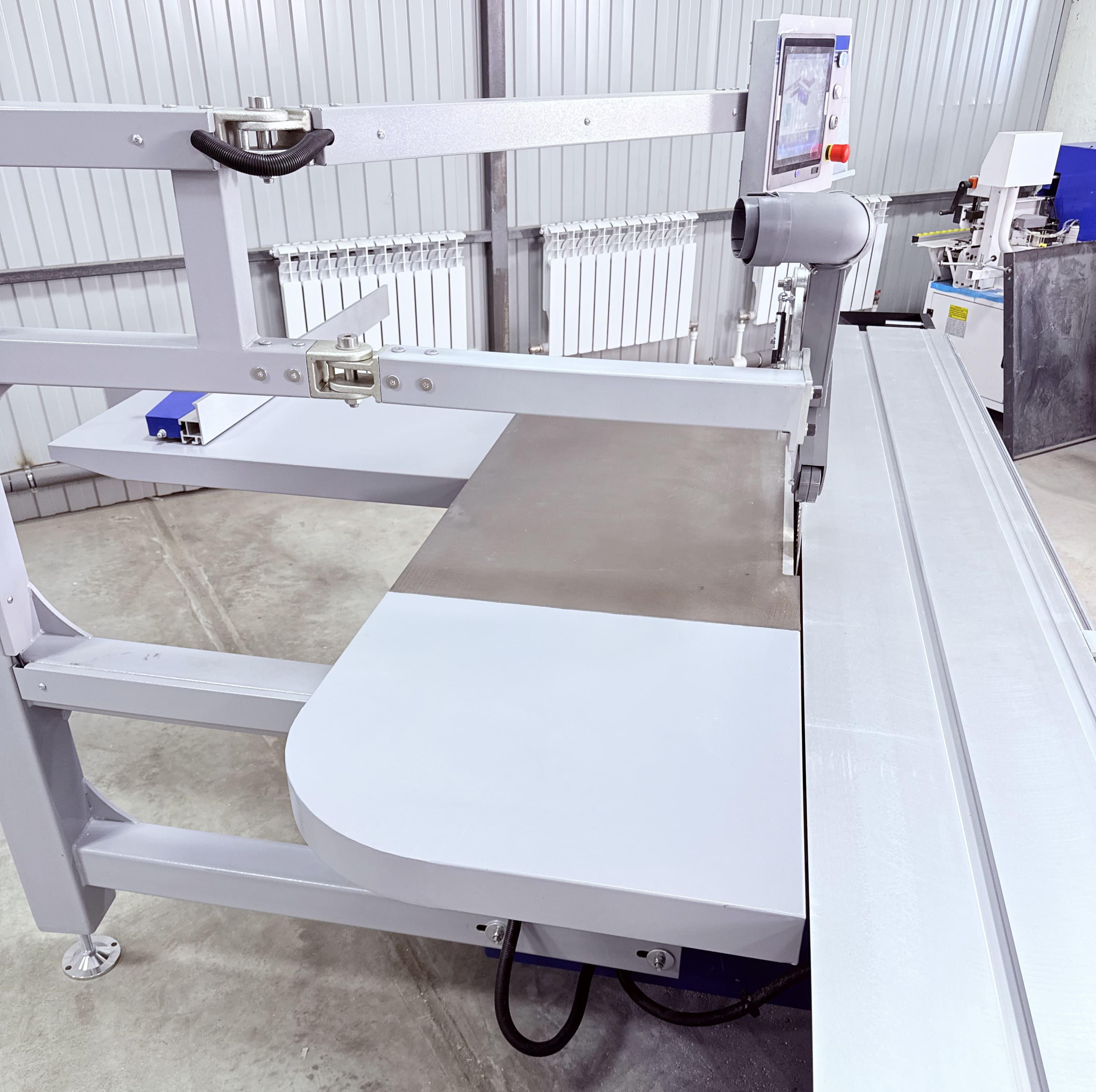 Усиленная конструкция форматного стола на каретке позволяет надежно базировать крупногабаритные детали, что дает высочайшее качество и геометрию распила.