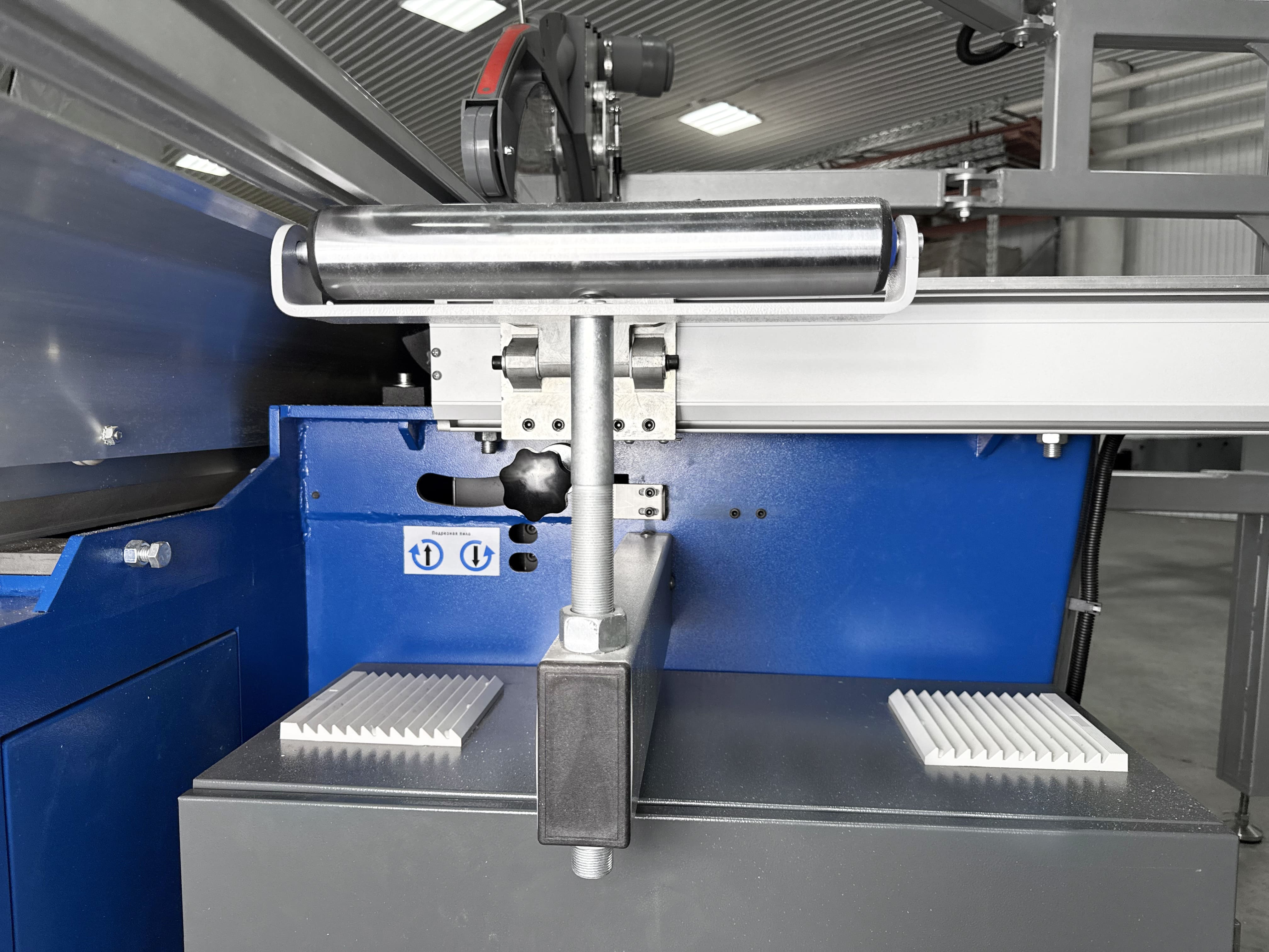Вместо алюминиевой обеспечивает надежную поддержку даже на большом расстоянии Телескопическая металлическая опора шириной 320 мм и массивные кронштейны крепления к станине обеспечивают жесткость конструкции и позволяют работать с листами материала большой массы без потери точности и качества раскроя. Прочный шарнир с металлическими удлинителями вместо алюминиевых обеспечивает стабильную поддержку и равномерное перемещение стола в течении всего цикла. 3 комплекта направляющих роликов поддержки телескопической опоры обеспечивают безусловную плавность хода и распределяют нагрузки для более длительной эксплуатации.