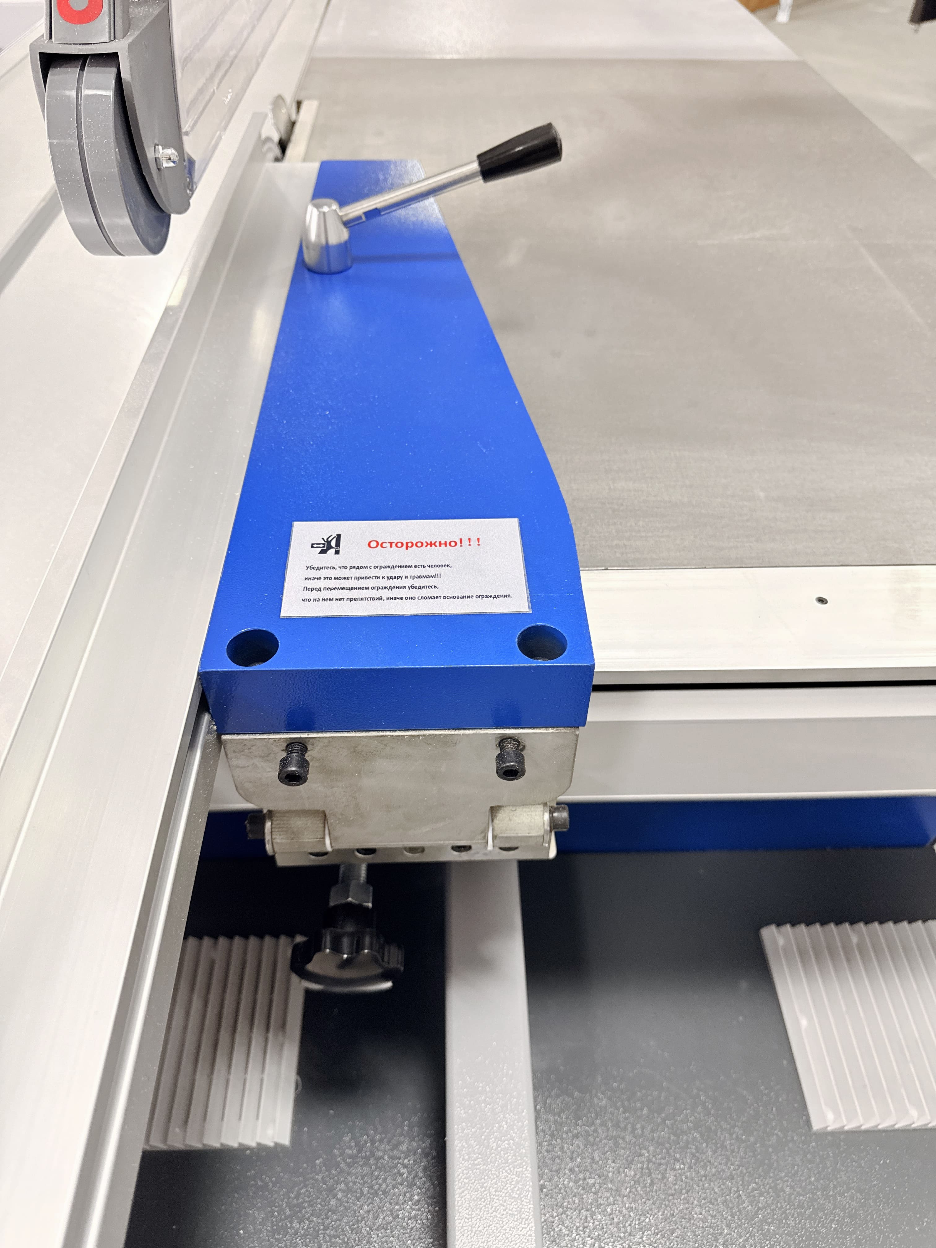Перемещение перекидного упора осуществляется с помощью линейного подшипника на призматической направляющей, данная система крепления придает конструкции безупречную плавность хода, жесткость и как следствие отсутствие люфтов, что гарантированно обеспечивает точное позиционирование.