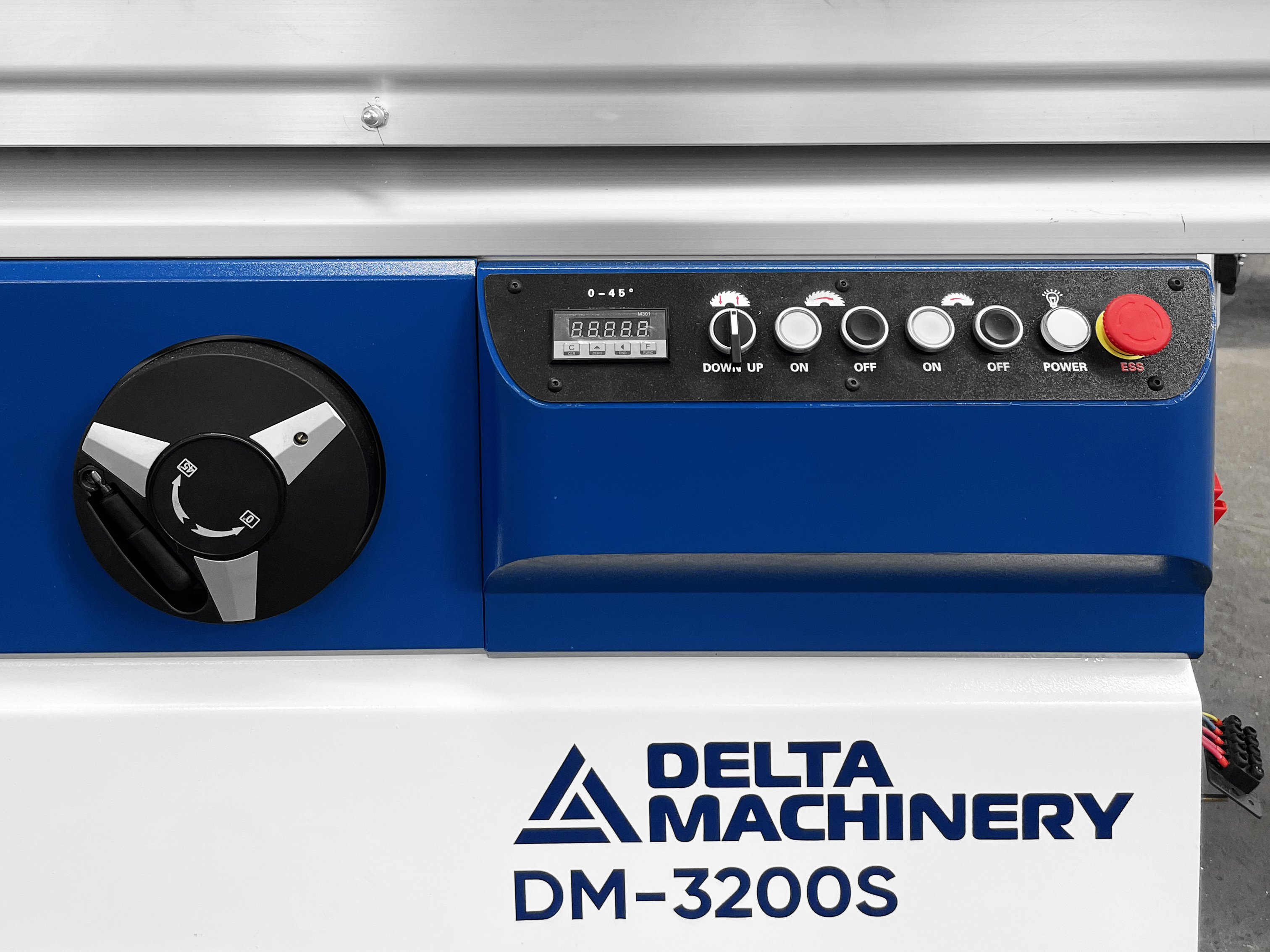 Эргономичный пульт управления оснащен цифровой индикацией угла наклона пильного узла Кнопками «пуск» / «стоп» основной и подрезной пилы, кнопкой «аварийный стоп» и лампой-индикатором работы станка. Маховик угла наклона пильного узла находится на лицевой части станка. Маховик подьема-опускания находится сбоку.