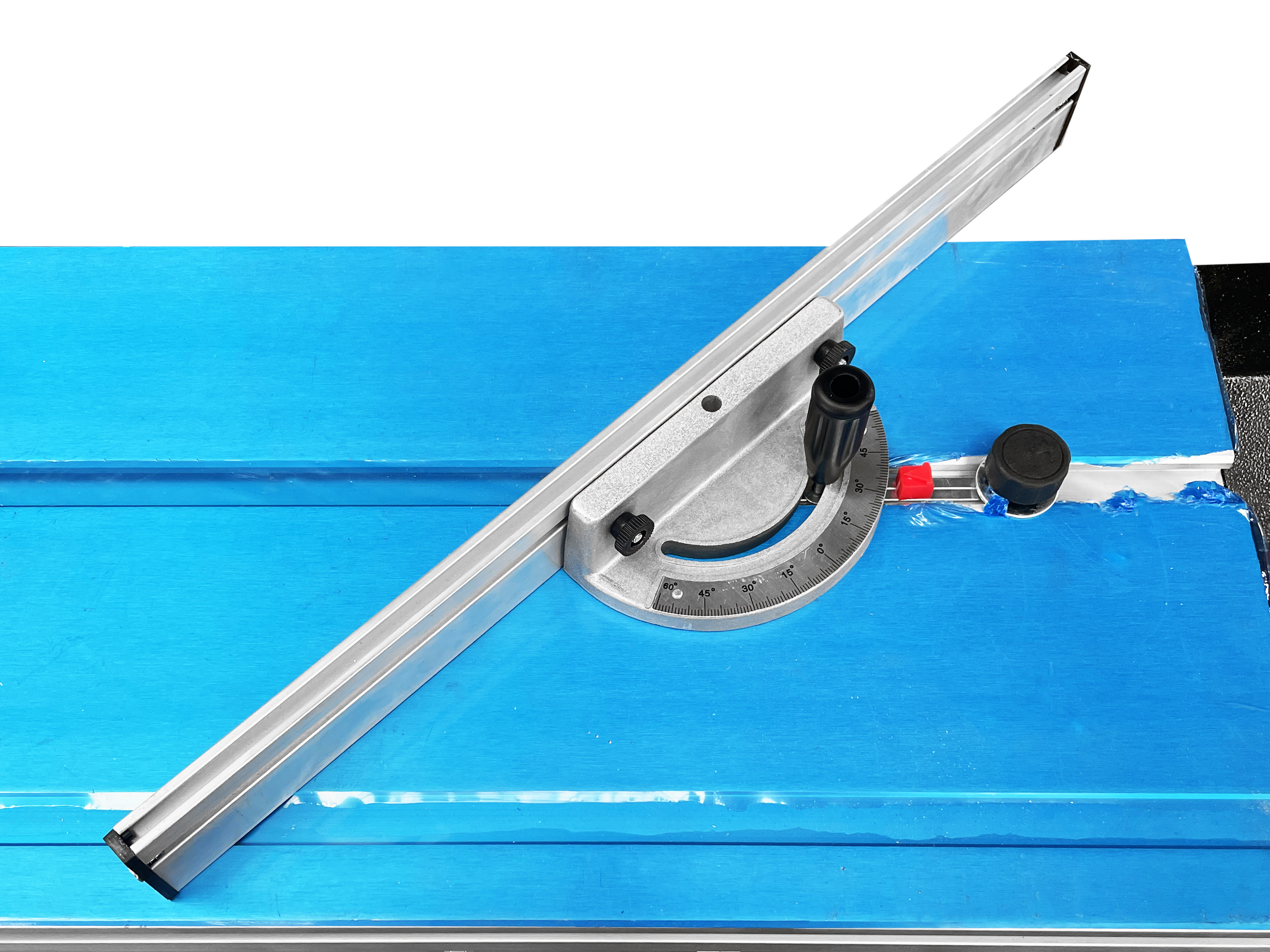 Станок позволяет раскраивать детали под углом, используя поперечный поворотный упор. Поперечный упор данного станка может быть настроен в диапазоне от 90 до 45 градусов по отношению к пиле.