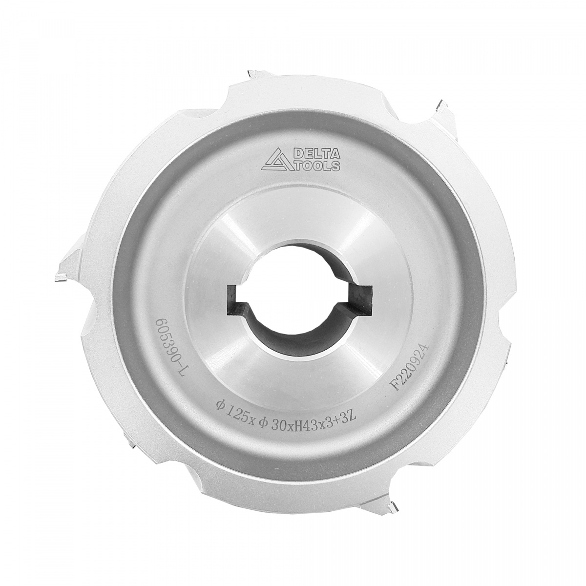 Фреза алмазная DELTA TOOLS фуговальная 125x30x43 3+3x9Т L для кромкооблицовочных станков применяется для форматирования и фугования поверхности плитных заготовок на узлах предварительного фрезерования кромкооблицовочных станков.
