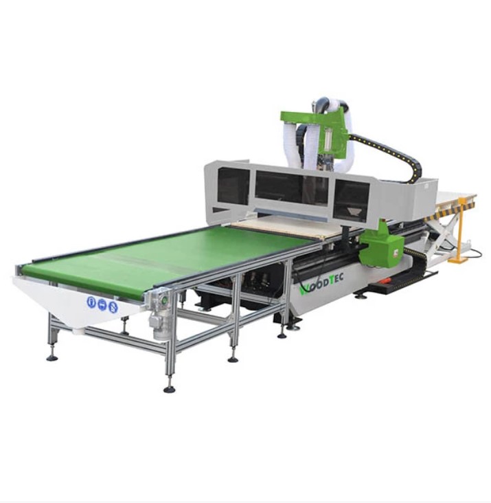 Система подачи листов на фрезеровку. Позволяет автоматизировать процесс подачи новых листов на стол для дальнейшей работы. Ускорят процесс производства.