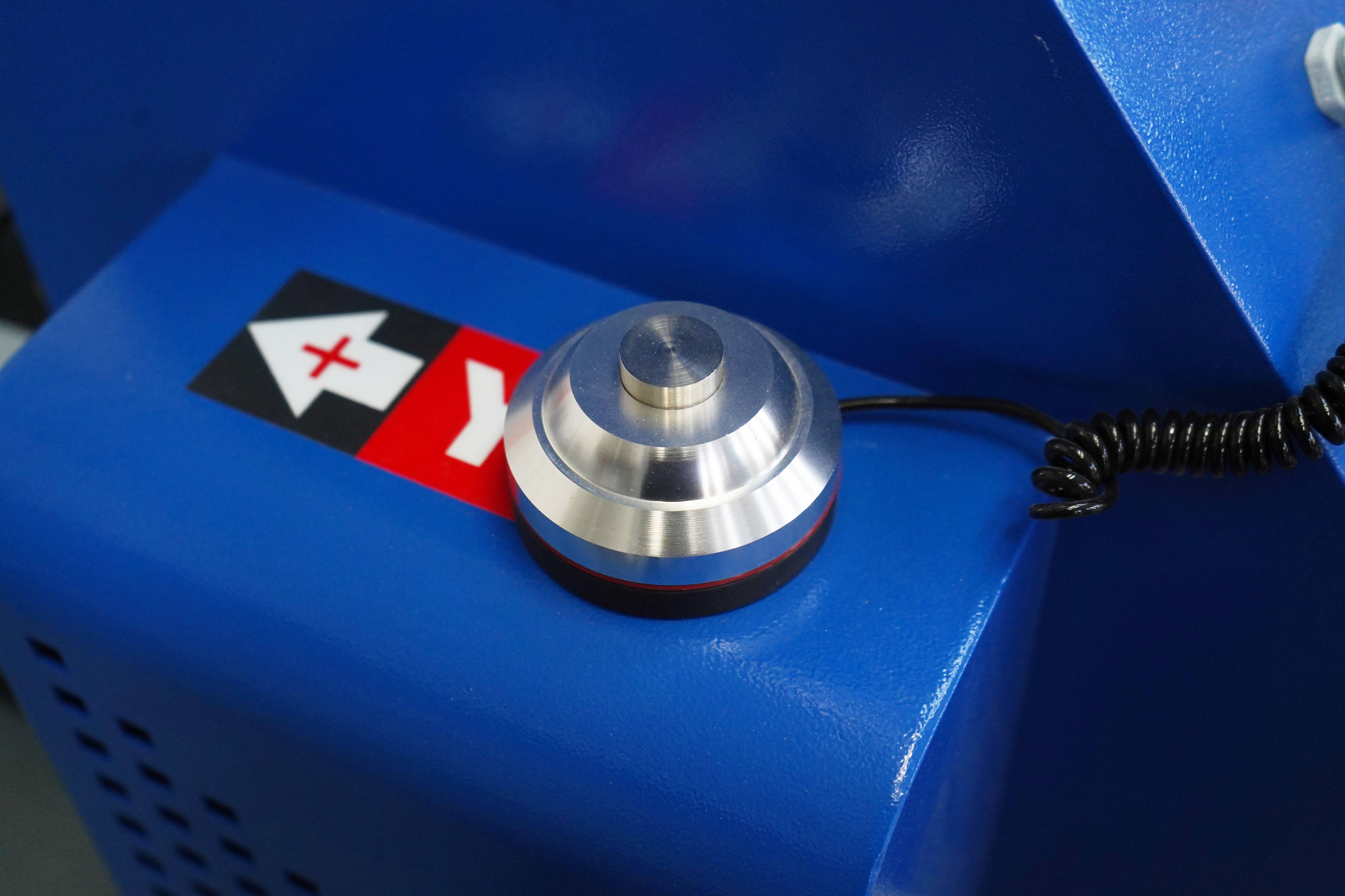 Заботясь о безопасности оператора, инженеры применили систему экстренной остановки станка в трех точках- на центральной стойке управления и на каждой из сторон портала.