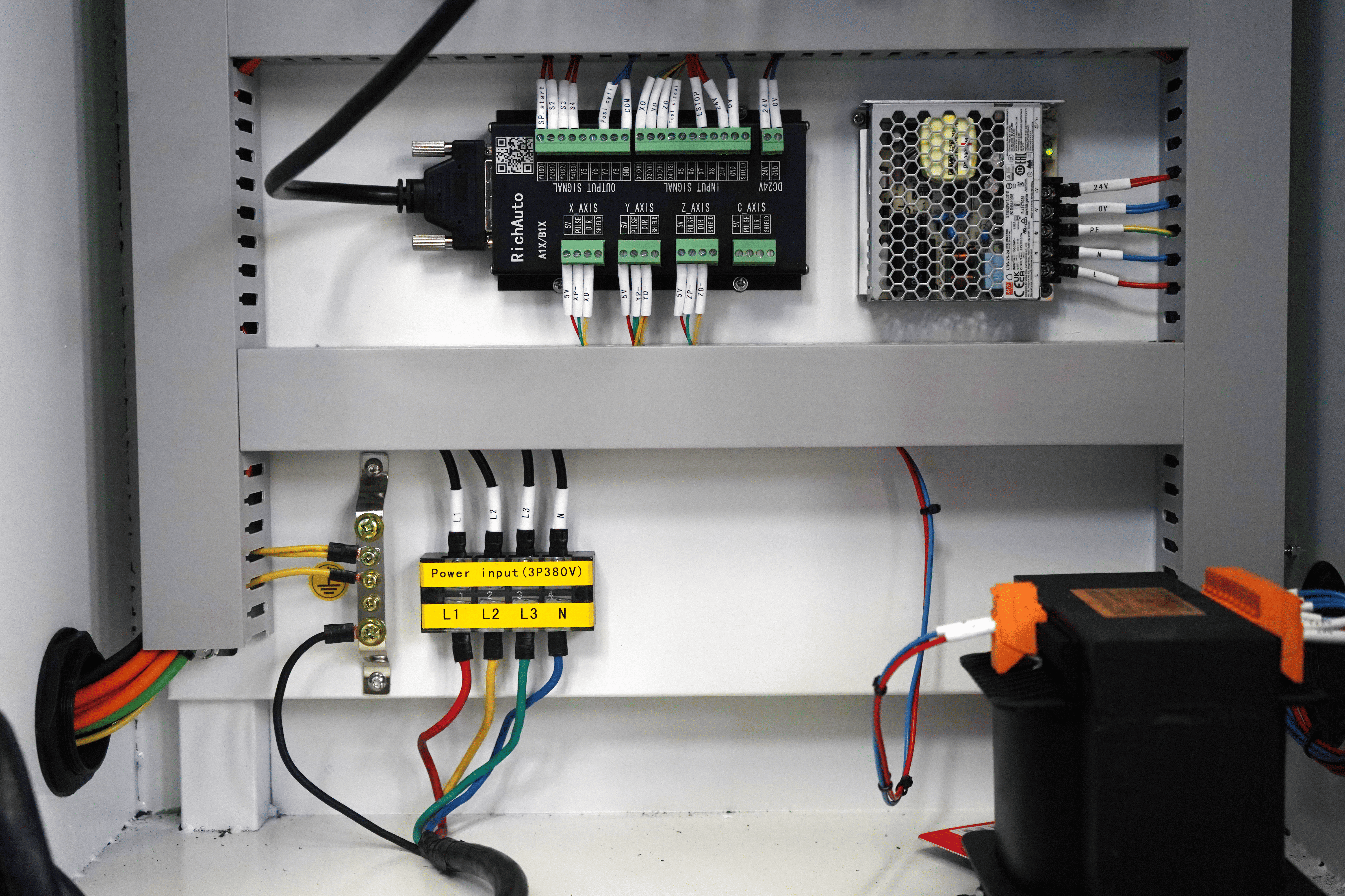 Самый основной элемент станка и от его оснащённости и защищённости зависит дальнейшая стабильная работа станка. Все компоненты и соединения расположены на строго отведенных местах и имеют хороший отвод тепла и легкий доступ для контроля и обслуживания.