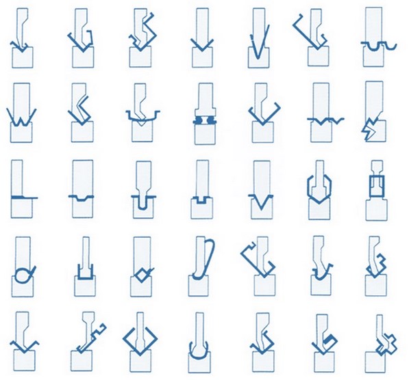 Станок укомплектован стандартным широкоуниверсальным комплектом гибочного инструмента (пуансон + матрица). Данный инструмент позволяет производить гибы с углами – от 90 и более градусов.