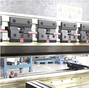 Станок оснащен быстросменной системой фиксации инструмента. Наиболее подходит при гибке небольших заготовок сложной формы, с одновременной установкой нескольких разных сегментов пуансонов.