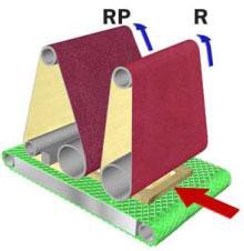 Система осцилляции ленты обеспечивает выравнивание ленты на шлифовальных узлах, и повышает качество шлифования. Реализована при помощи установки концевых датчиков, которые не запиливаются в процессе работы, что гарантирует стабильное положение ленты.