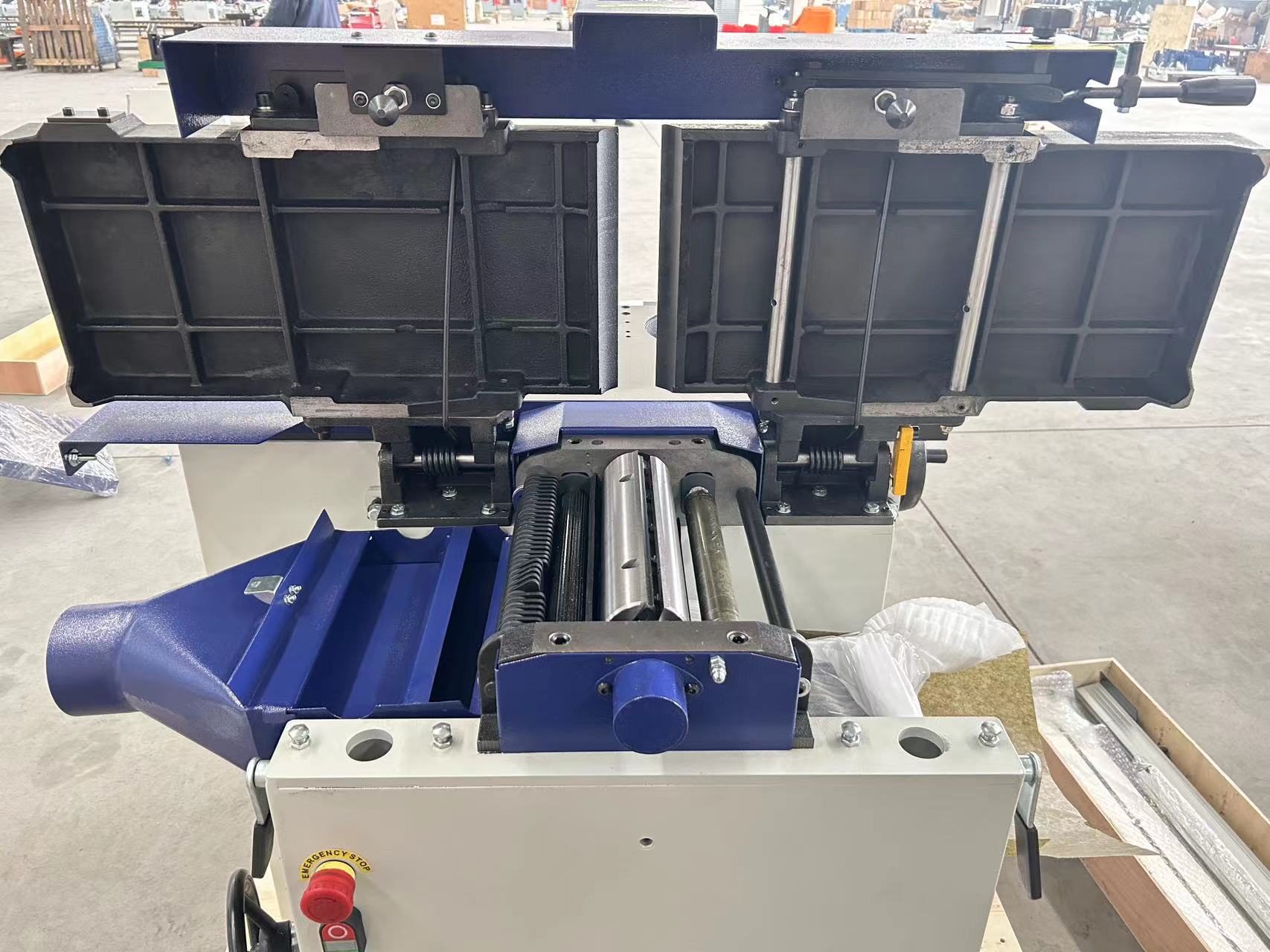 Строгальный узел станка имеет 3-х ножевой вал, что обеспечивает высокое качество строгания заготовок. Столы изготовлены из чугуна усиленного ребрами жесткости, что исключает вибрации и улучшает качество строгания.