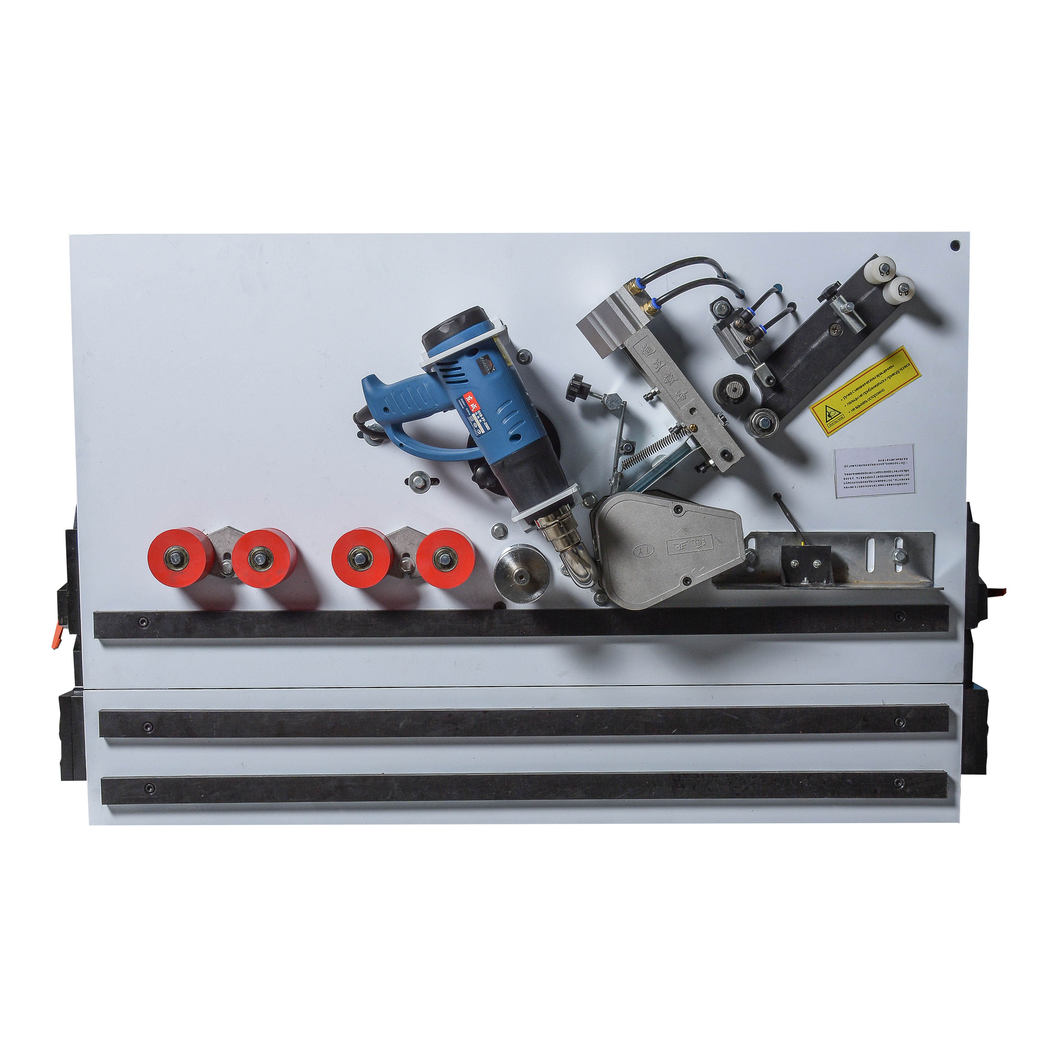 Надежный позиционный станок c наклоняемым рабочим столом и промышленным феном. Предназначен для облицовывания прямолинейных и криволинейных кромок мебельных щитов и заготовок натуральным полосовым или синтетическим рулонным материалом.