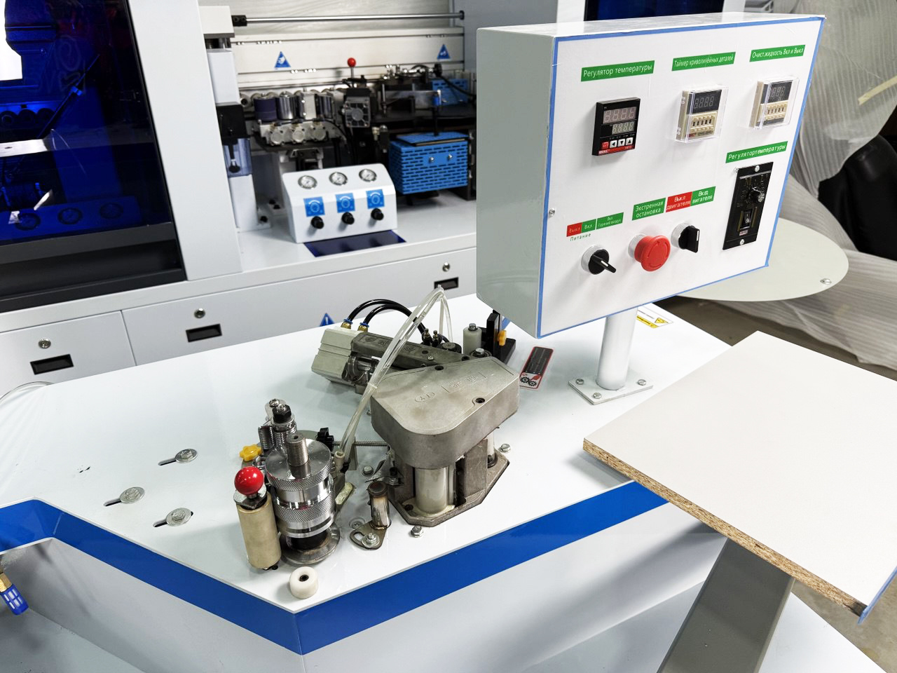 Надежная фиксация позволяет удобно работать как с малыми, так и с большими заготовками. Дает возможность в одиночку приклеивать кромочный материал на крупногабаритные криволинейные и прямолинейные детали