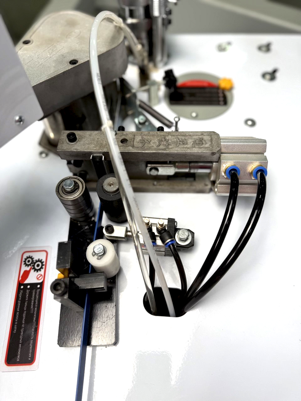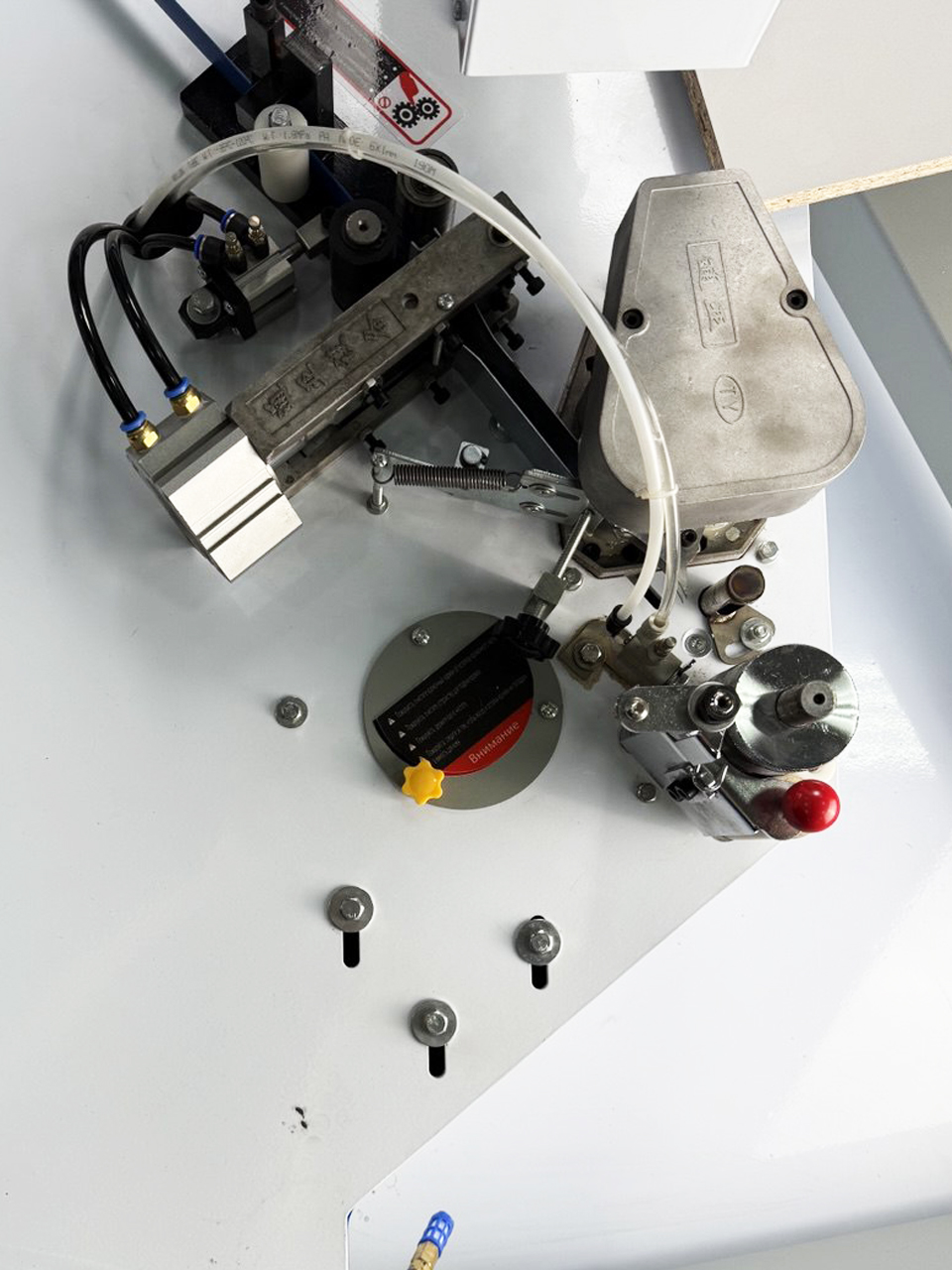 Дополнительный прижимной ролик на пружине для качественного приклеивания внутренних и наружних радиусов кромочным материалом