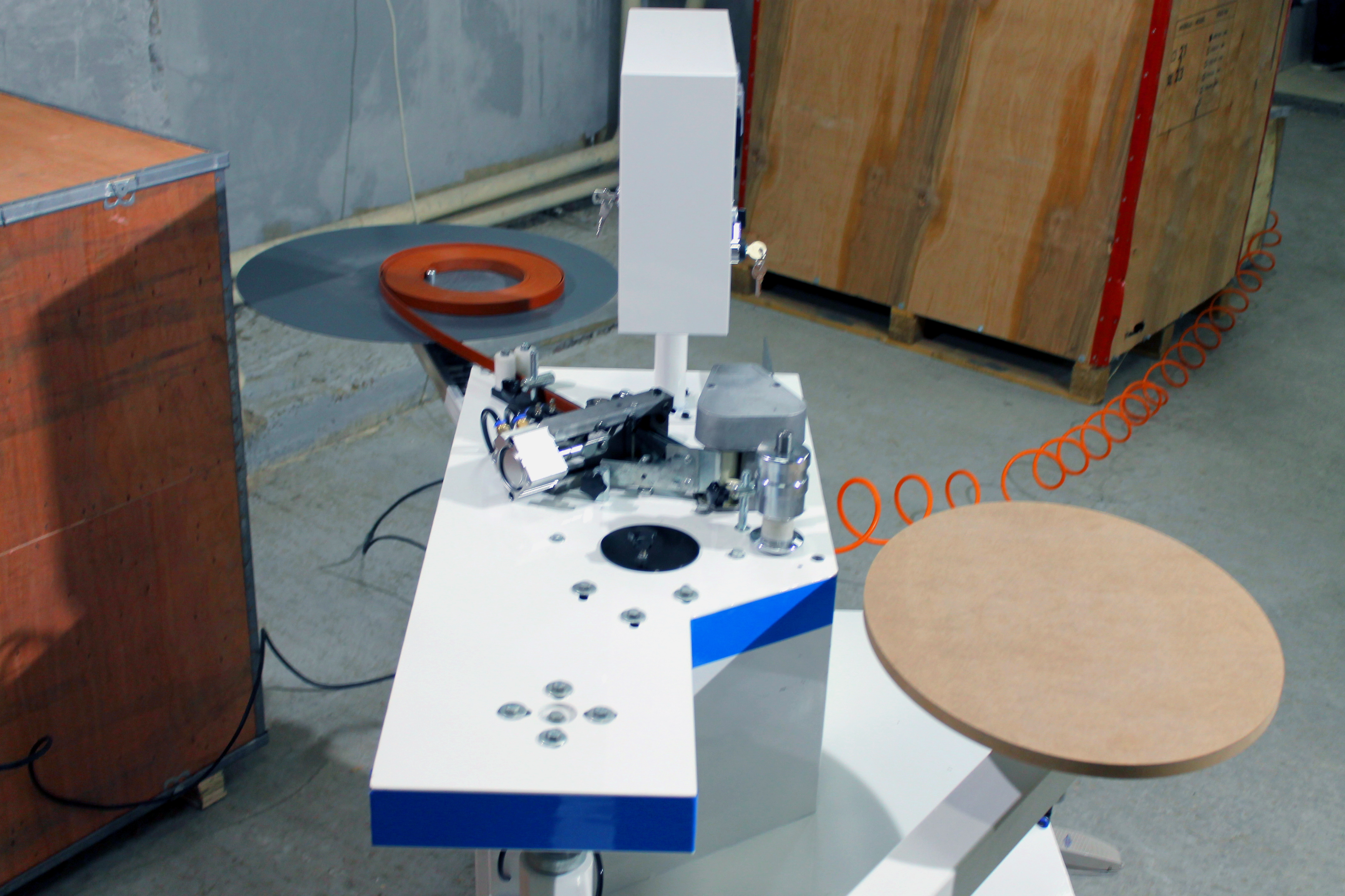 В крупных цехах может использоваться в дополнение к автоматическому прямолинейному кромкооблицовочному оборудованию.