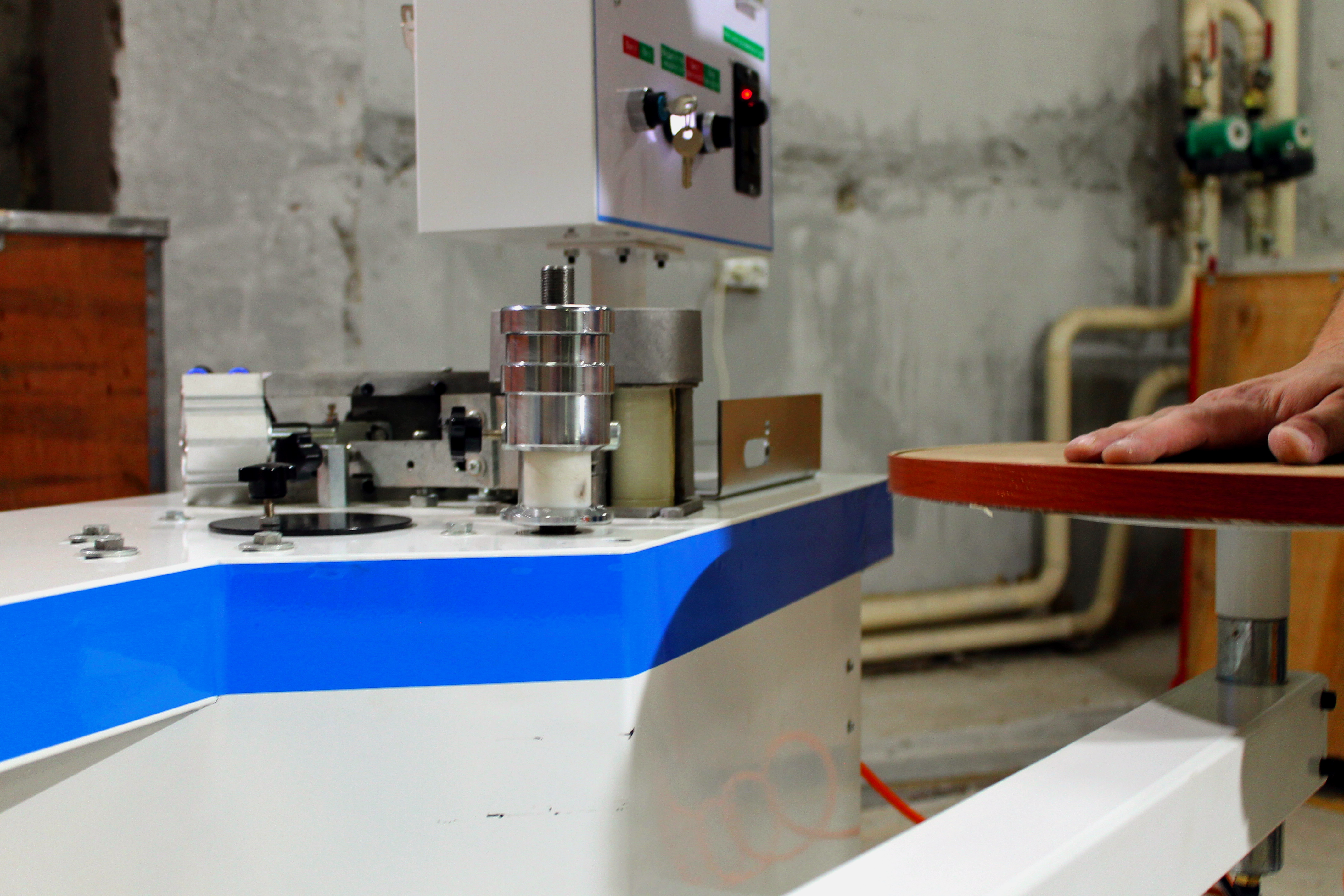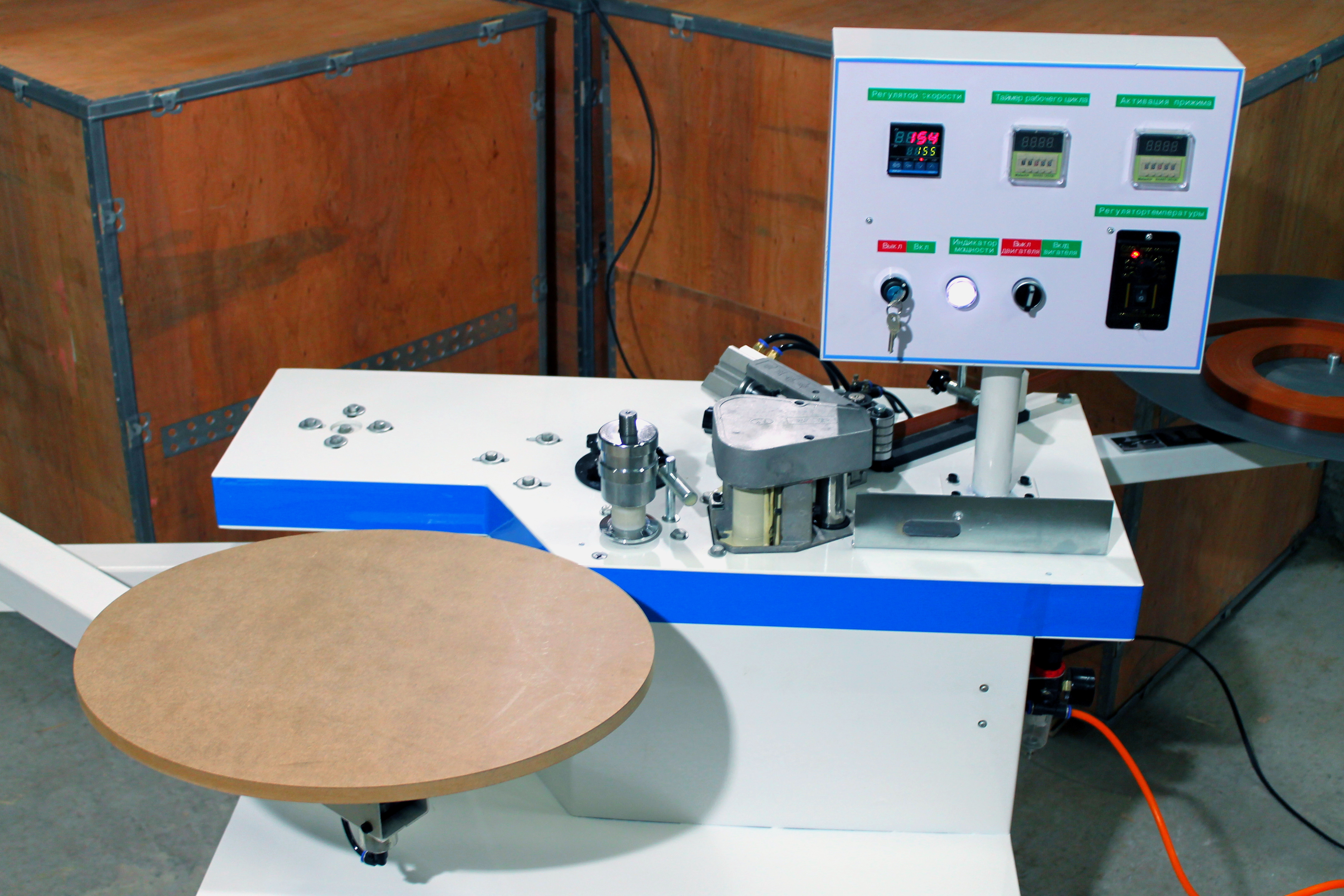 Предназначен для облицовывания деталей с прямой, круглой формой, а также с внутренними и внешними радиусами криволинейных заготовок.