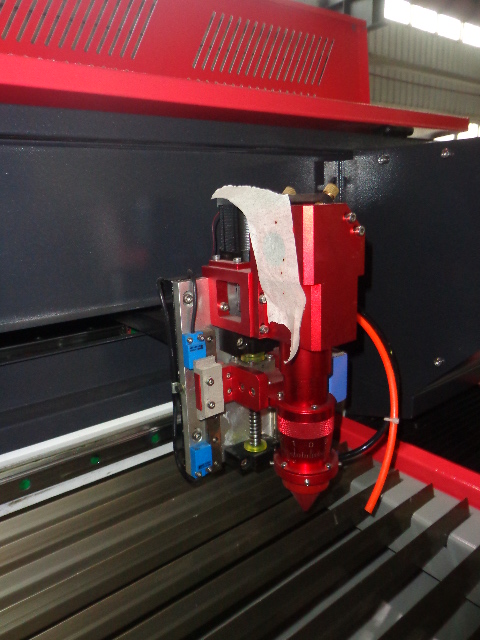 Специальная лазерная голова (сопло), представляет собой управляемую 3-ю ось. Движение осуществляется за счёт шарико-винтовой пары и шагового двигателя. Предназначена для резки как тонкого металла, так и неметалических заготовок. Имеет возможность подключения болона с газом.