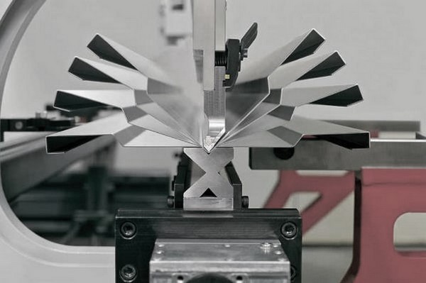 Станок укомплектован стандартным широкоуниверсальным комплектом гибочного инструмента (пуансон + матрица). Данный инструмент позволяет производить гибы с углами – от 90 и более градусов.