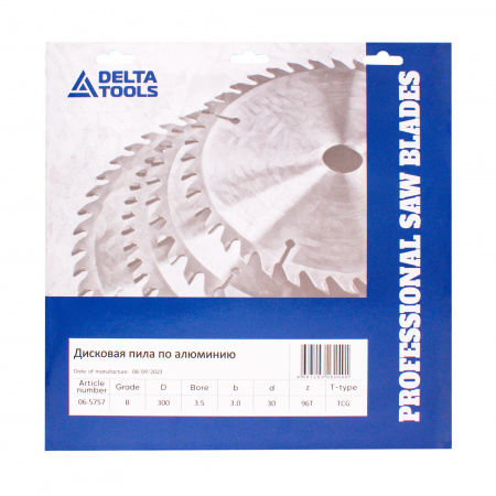 Дисковая пила DELTA TOOLS 300x30x3,5/3,0 Z=96 Neg по алюминию используются для резки изделий из алюминия и других цветных сплавов, пластика, органического стекла и т.п.