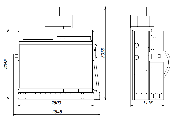 Размер корпуса с вентилятором ДхГхВ: 2940х1050х3130 мм