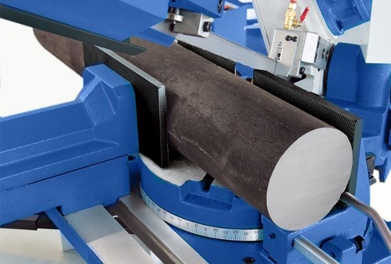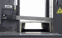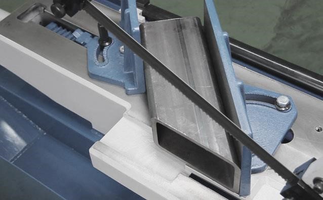 Точность резки на станке достигается за счет перпендикулярно установленного ленточнопильного полотна, которое надежно поддерживается шариковыми подшипниками с увеличенным сроком эксплуатации (встроены в направляющие на пильной раме).