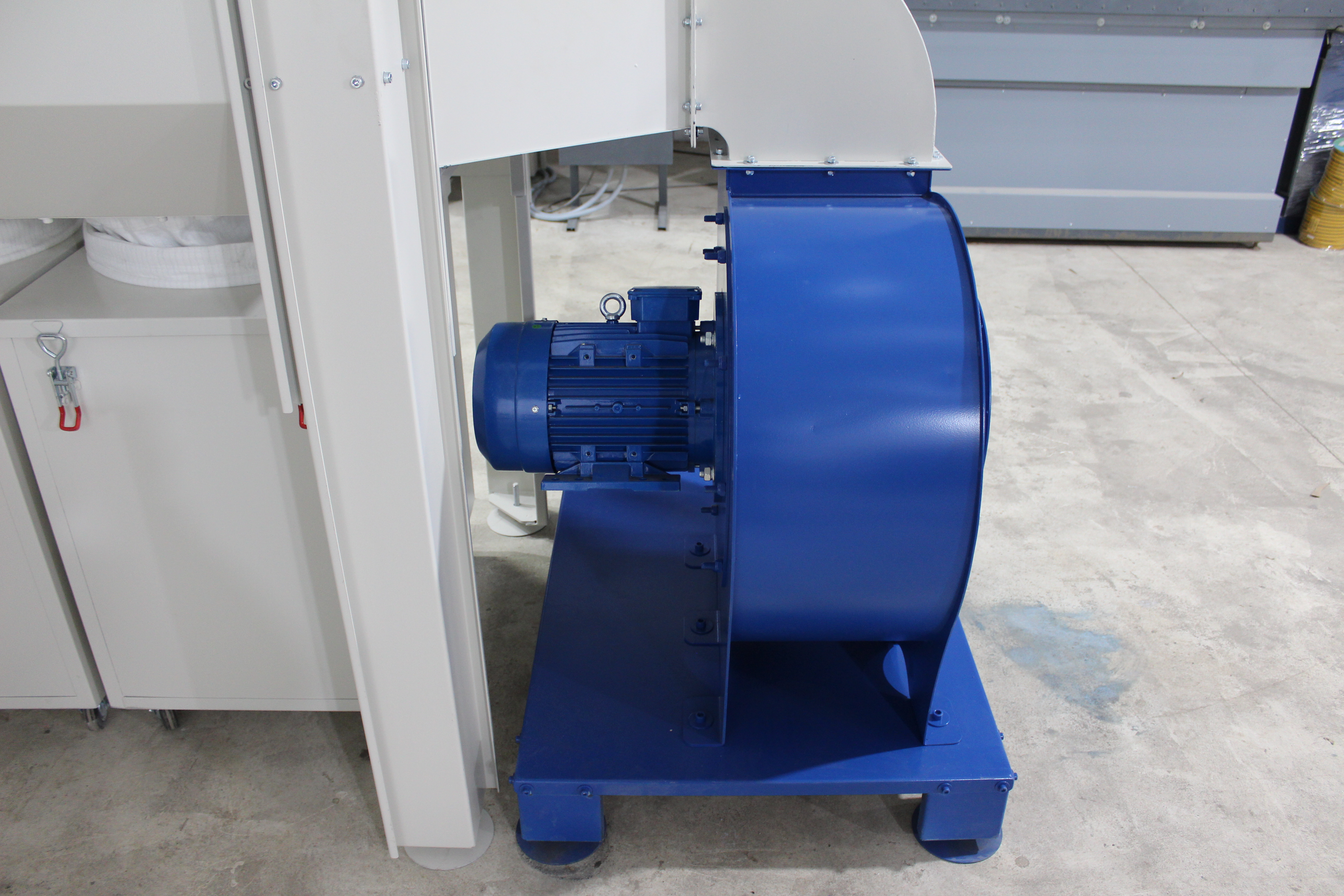 Агрегат состоит из малошумного вентилятора с профилированными лопатками, встроенного циклонного элемента с корпуса, пылевого улиточным входом для отделения крупных фракций пыли, бункера для сбора пыли и 64 фильтровальных рукавов оснащенных двумя двигателями для вибростряхивания.