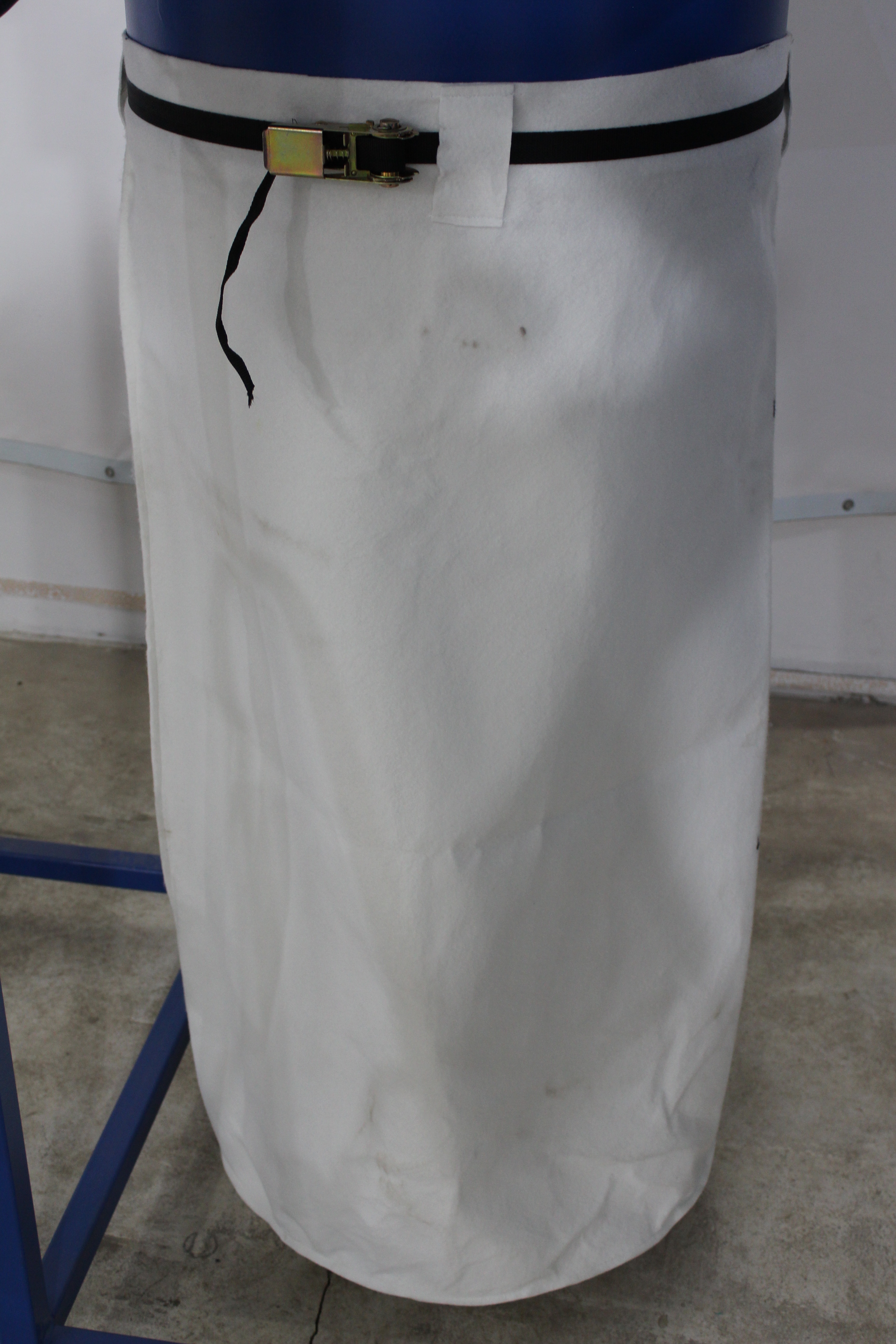 Выполнен из каландрированного иглопробивного термоскрепленного материала, с окошком для визуального осмотра накопления мешка стружкой.