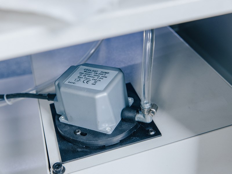 Точность резки на станке достигается за счет перпендикулярно установленного ленточнопильного полотна, которое надежно поддерживается шариковыми подшипниками с увеличенным сроком эксплуатации (встроены в направляющие на пильной раме).