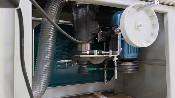 Станок снабжен механизмом фиксации шпинделя от смещений в вертикальной плоскости. После настройки на высоту обработки шпиндель фиксируется в корпусе, его смещение исключено.