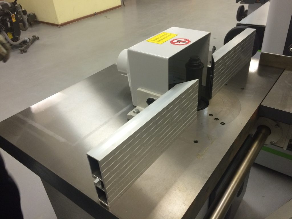 Кожух под фрезы Ø230 мм. Направляющие линейки длиной 370 мм каждая. Для удаления стружки в кожухе предусмотрено аспирационное отверстие Ø100 мм.