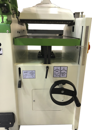 Осущевствляется винтовой передачей, это гарантирует постоянство выставленного размера, даже при перестройке станка с режима фугования на рейсмусование.