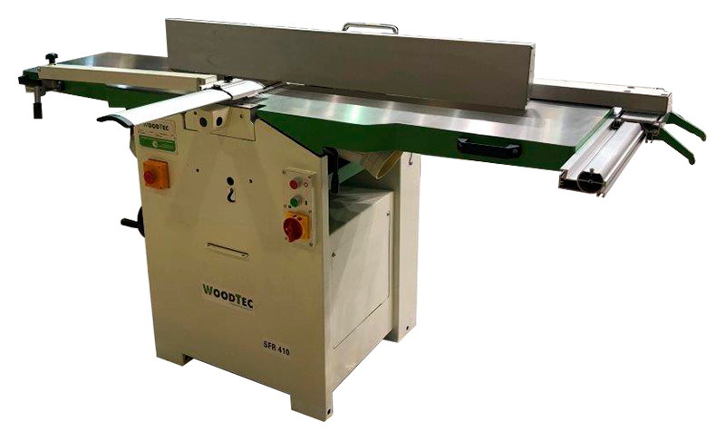 Снабжен профессиональной упорной линейкой (которая крепится к торцу подающего стола) и дает возможность устанавливать станок возле стены, тем самым не теряя площадь в цеху. Защита фуговального вала, обеспечивает безопасность в работе оператора.