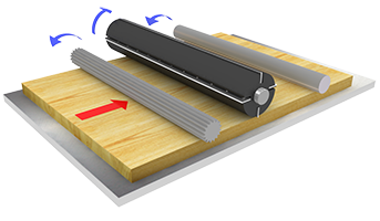 Трехножевой строгальный вал, обеспечивает идеальное качество строгания, снабжен когтевой защитой и металлическим подающим валом. Строгальные и падающие валы закреплены в массивном стальном корпусе, который эффективно гасит ударные нагрузки, возникающие в процессе работы.