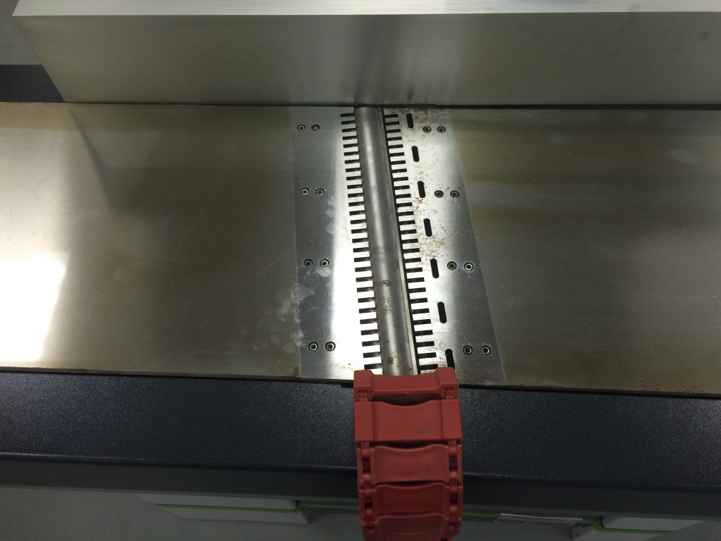 Алюминиевая направляющая линейка длиной 1200 мм и высотой 150 мм с перемещением с помощью маховика через передачу шестерня-рейка.