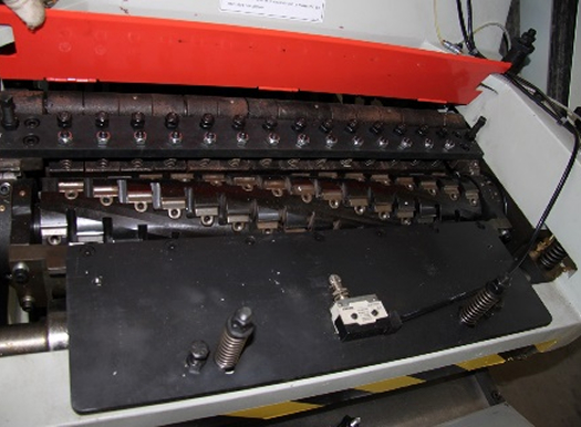 К верхнему ножевому валу доступ возможен через верхнюю крышку.  Концевик исключает запуск станка, что обеспечивает безопасную замену ножей.