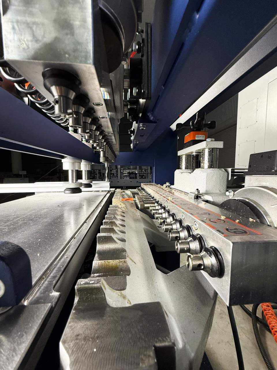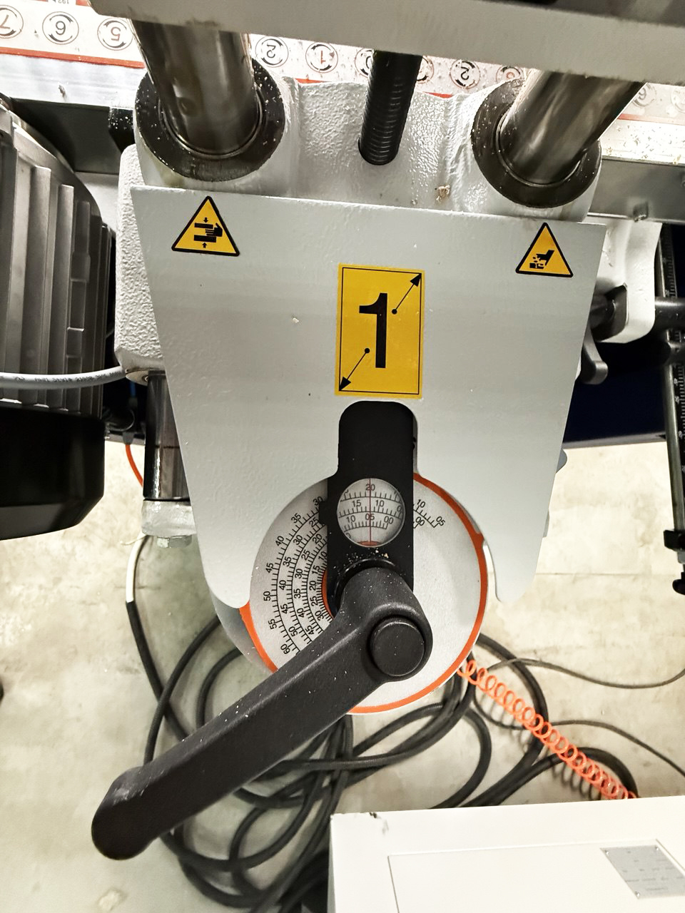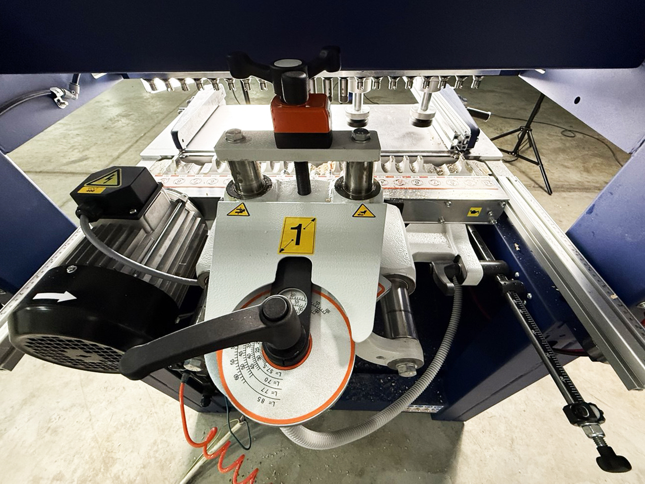 Поворотная сверлильная группа, может производить сверления под разными углами от 0 до 90.