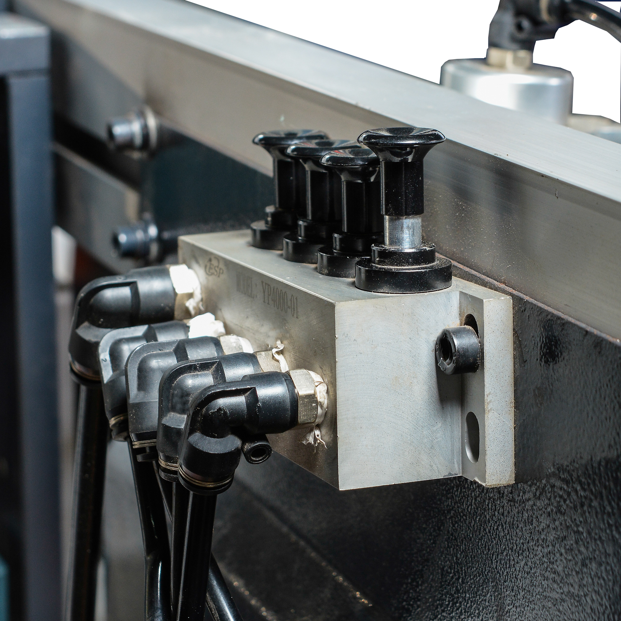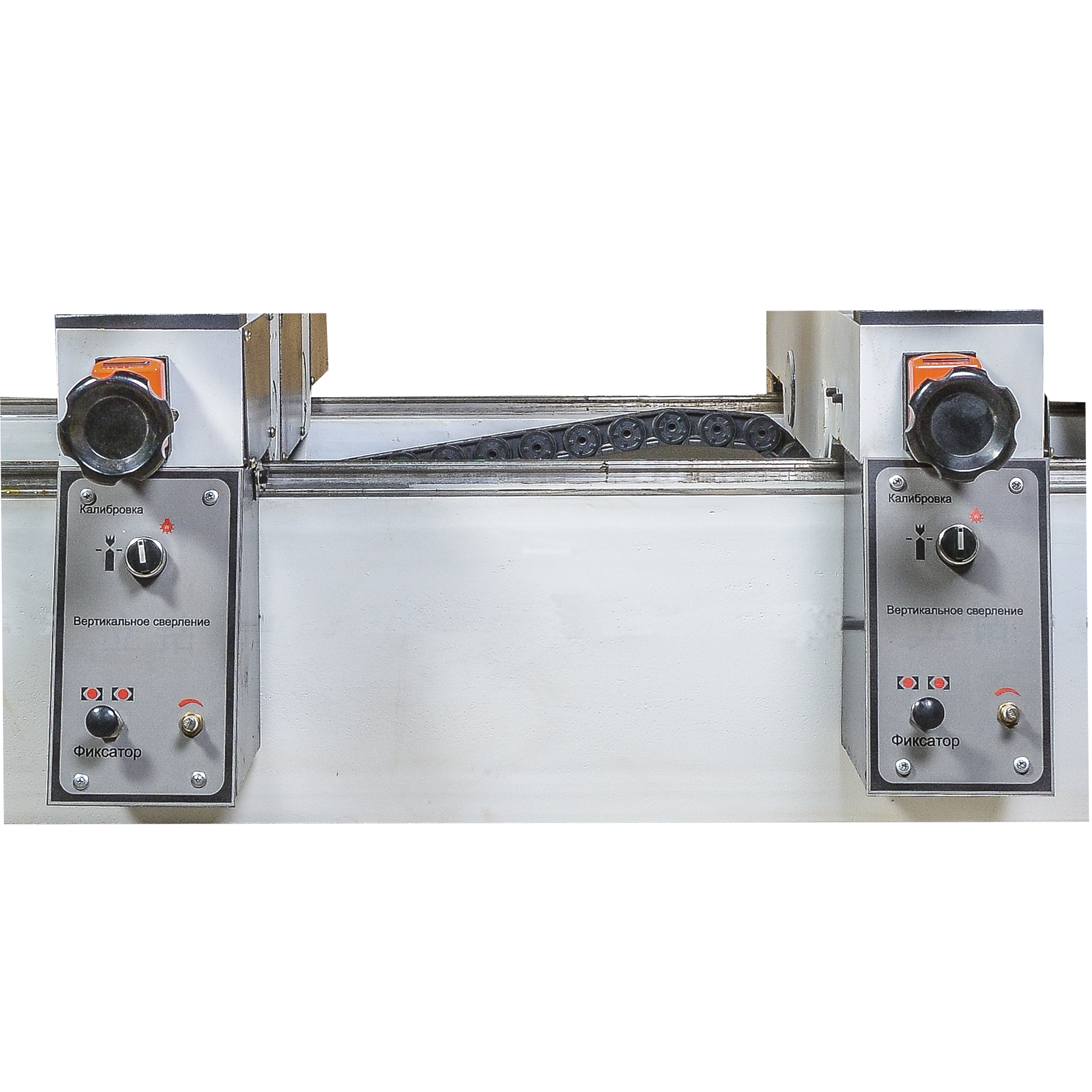 Регулировка скорости подачи инструмента и пневматическая фиксация на каждой сверлильной группе.