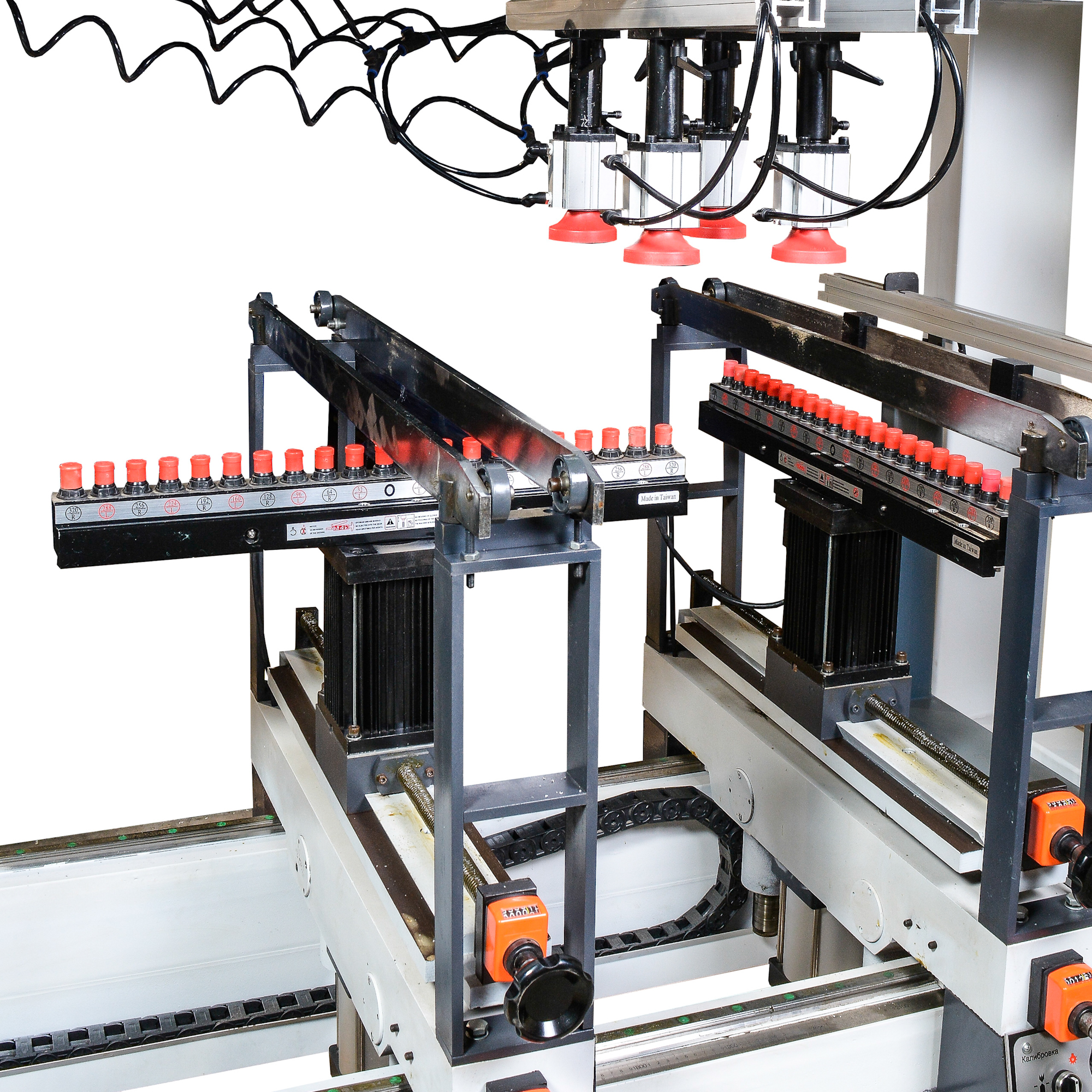 • Фиксация сверлильных групп осуществляется с помощью пневматики