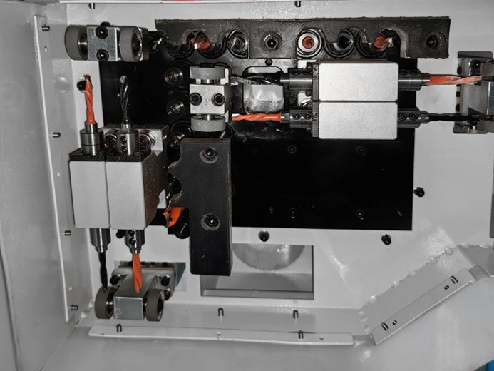 Три сверлильные группы: две верхних и одна нижняя + 2 фрезерных узла (один сверху и один снизу).