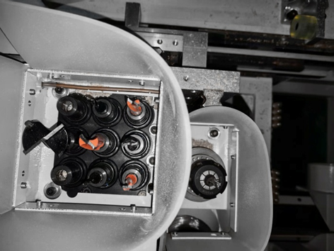 Надежная конструкция из двух пневматических захватов надежно удерживает и точно перемещает деталь в процессе обработки.