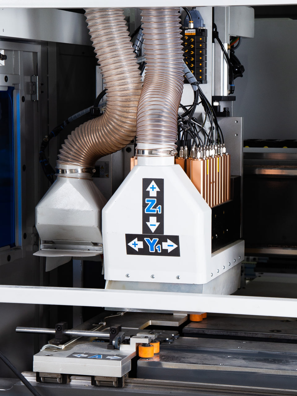 Три сверлильных группы: две верхние и одна нижняя по 2,2 Вт +2 фрезерных узла (верхний и нижний)